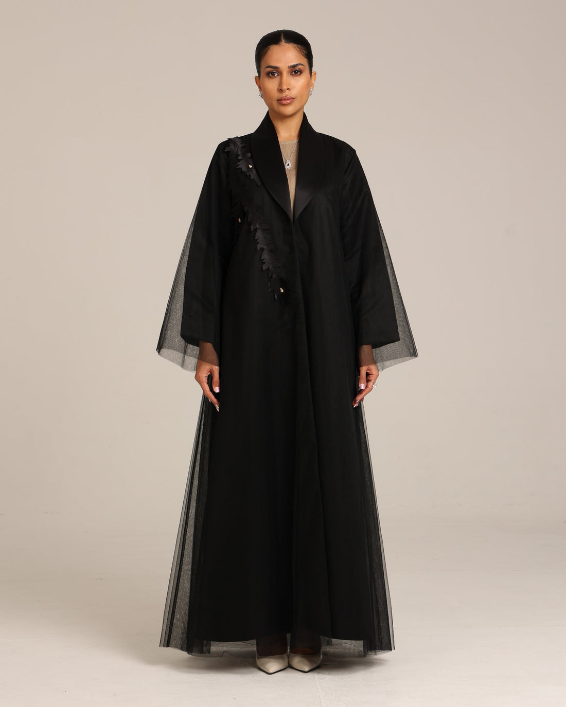 A statement of refined elegance, this abaya is crafted from luxurious Satan and Tulle ....