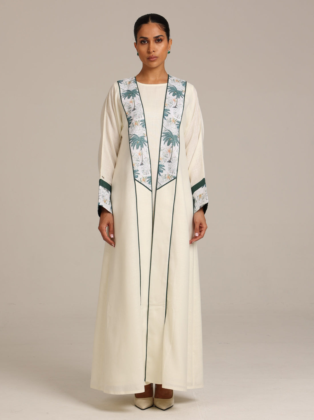 "The luxurious Mix Linen fabric abaya Set in an elegant Summer Color is crafted from...
