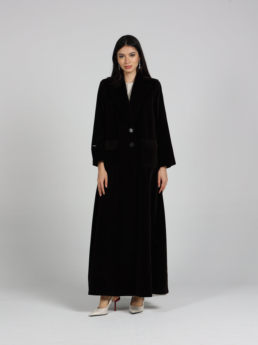 This abaya is tailored from European Velvet fabric, offering a luxurious feel. It boasts a...