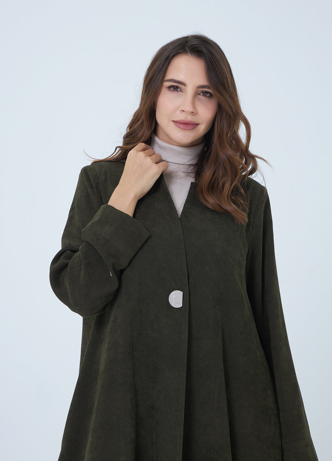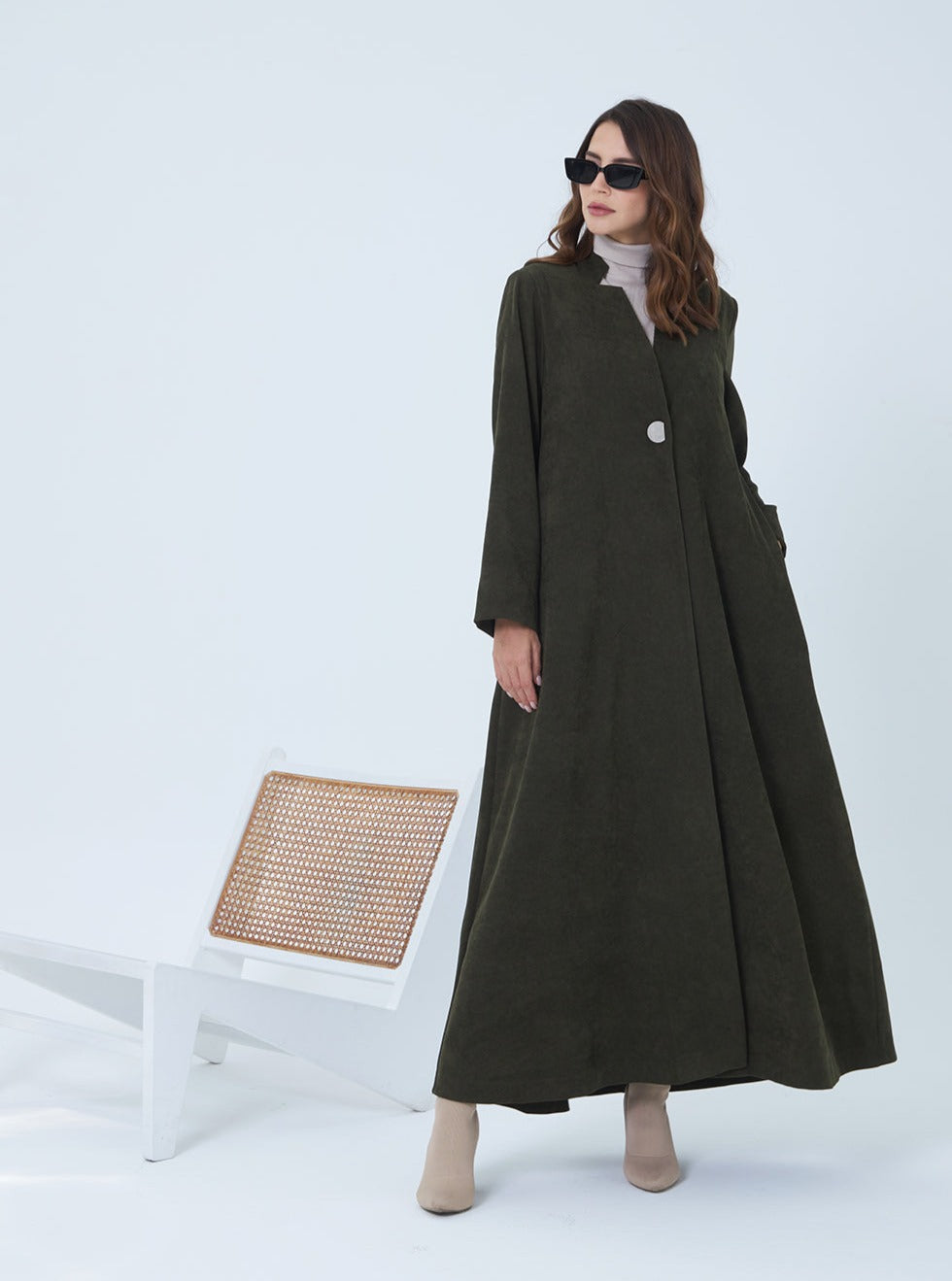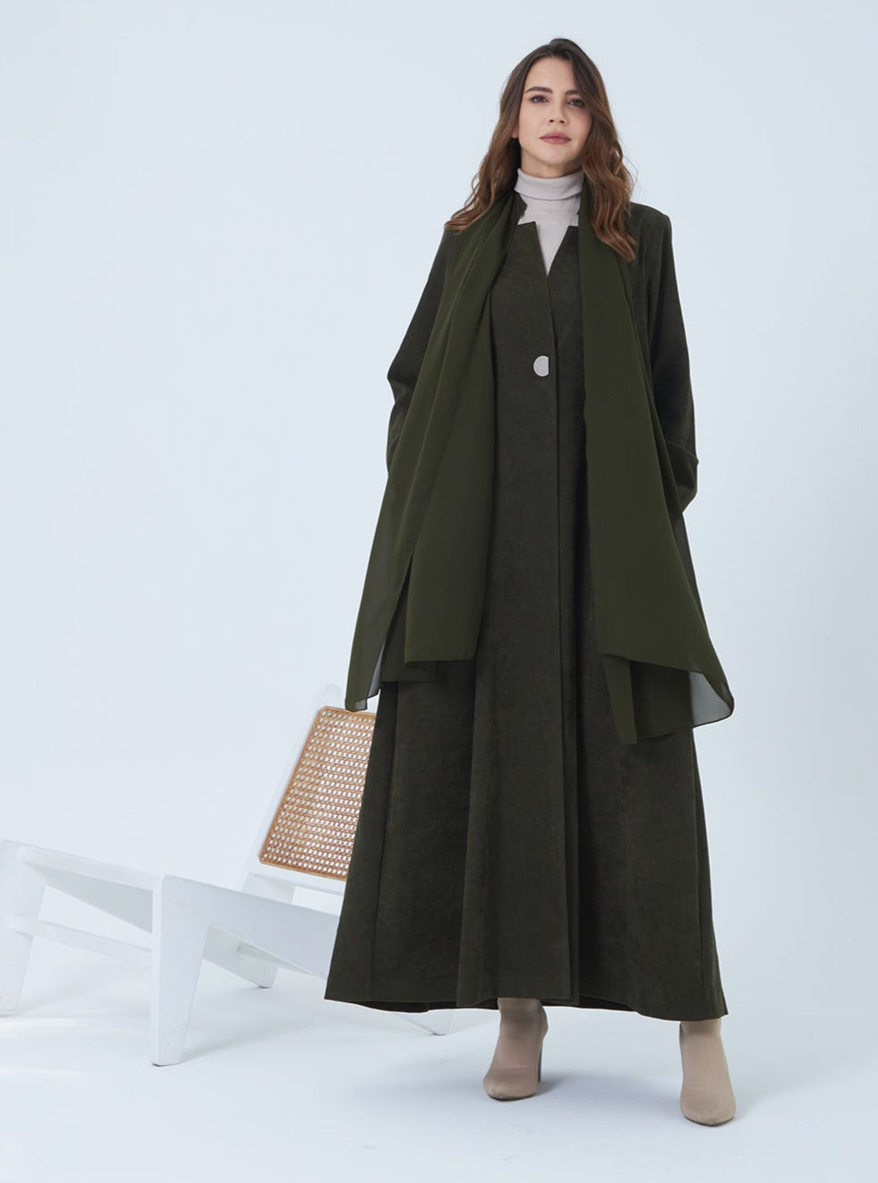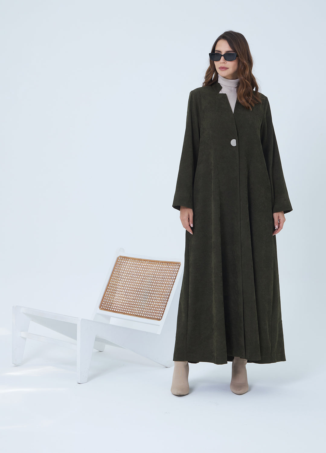 عباية من قماش الشامواه المقلم الفاخر بقصة جاكيت أنيقة مع زر واحد , من مجموعة خريف شتاء هذا الموسم