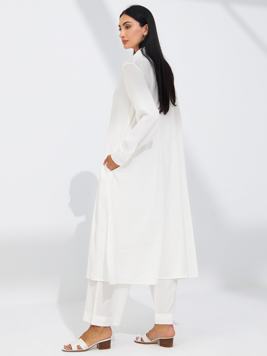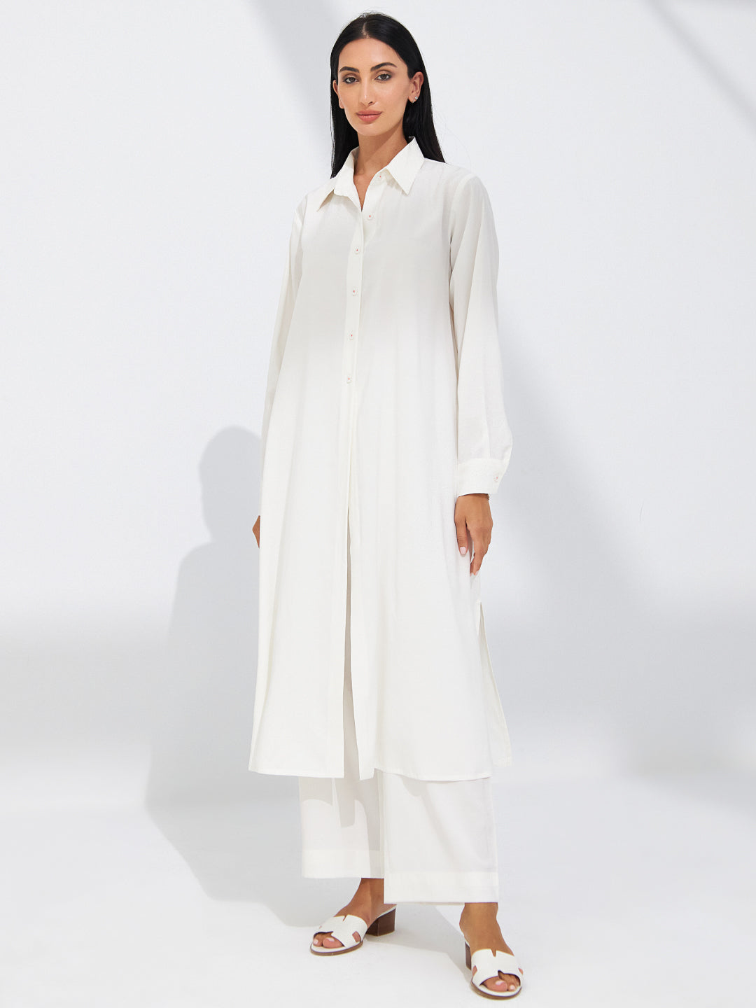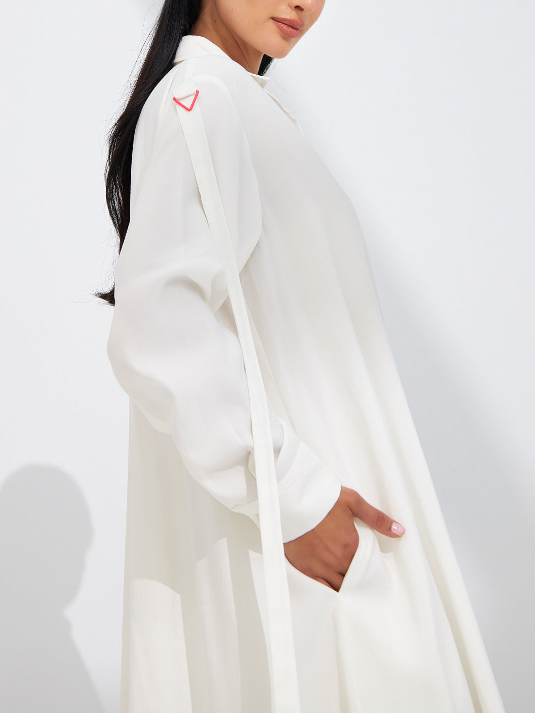 طقم قطعتين من قماش الكوبرو الأبيض الفاخر مع اكسسوار جانبي