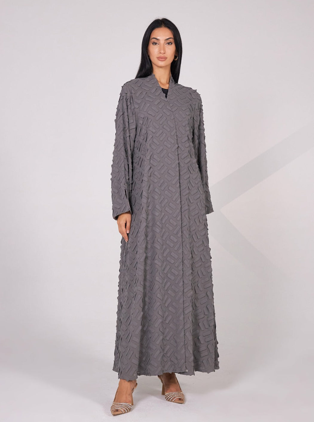عباية من قماش الشيفون الفاخر مع قطع مستطيلة مركبة عليها و مبطنة بالحرير الساتان , بقصة رائعة من مجموعة رمضان و العيد 2024