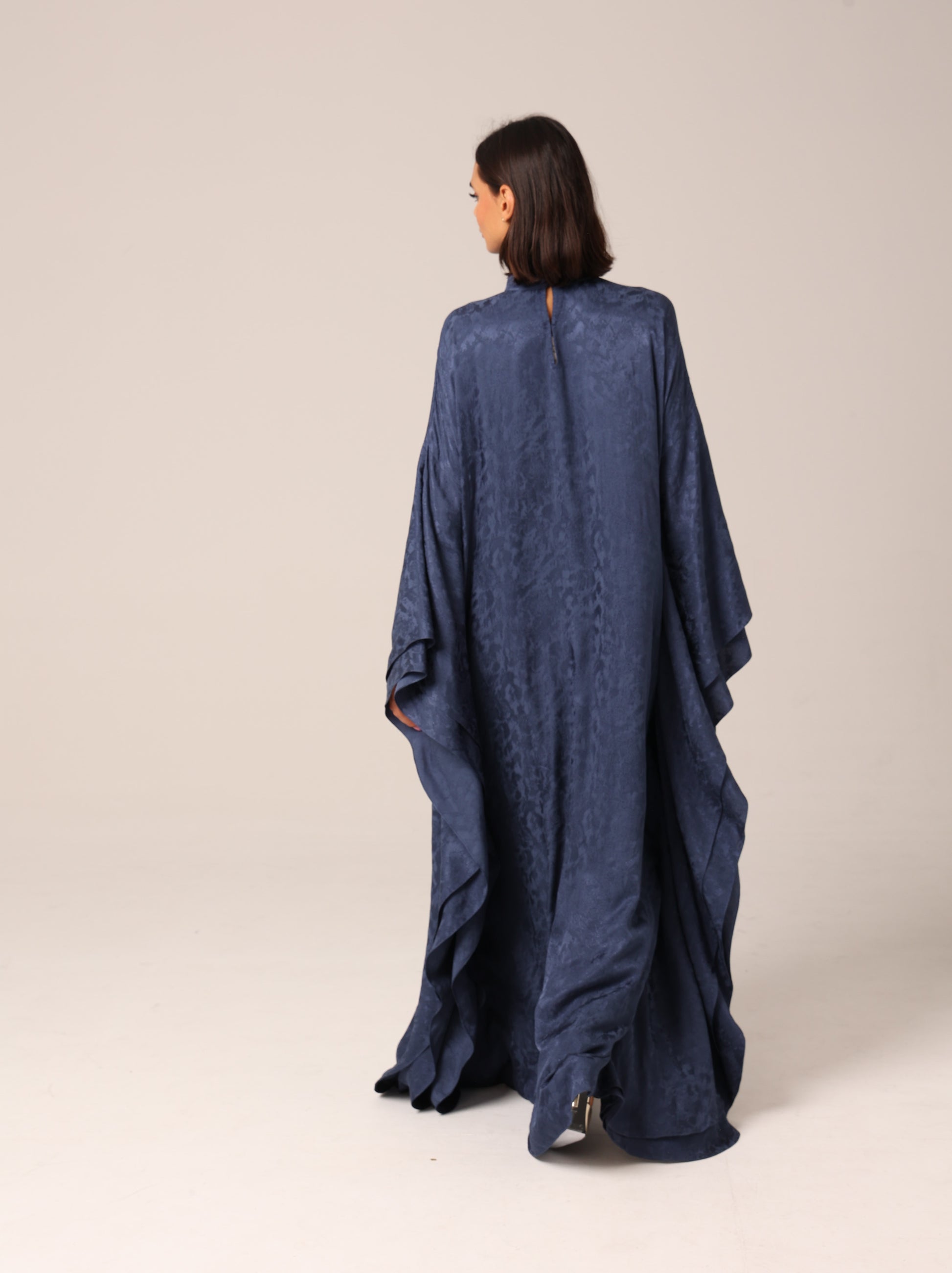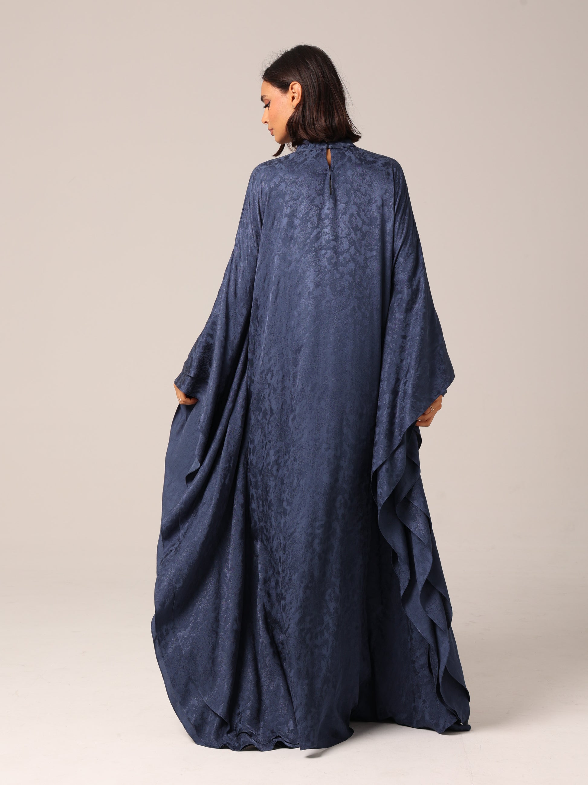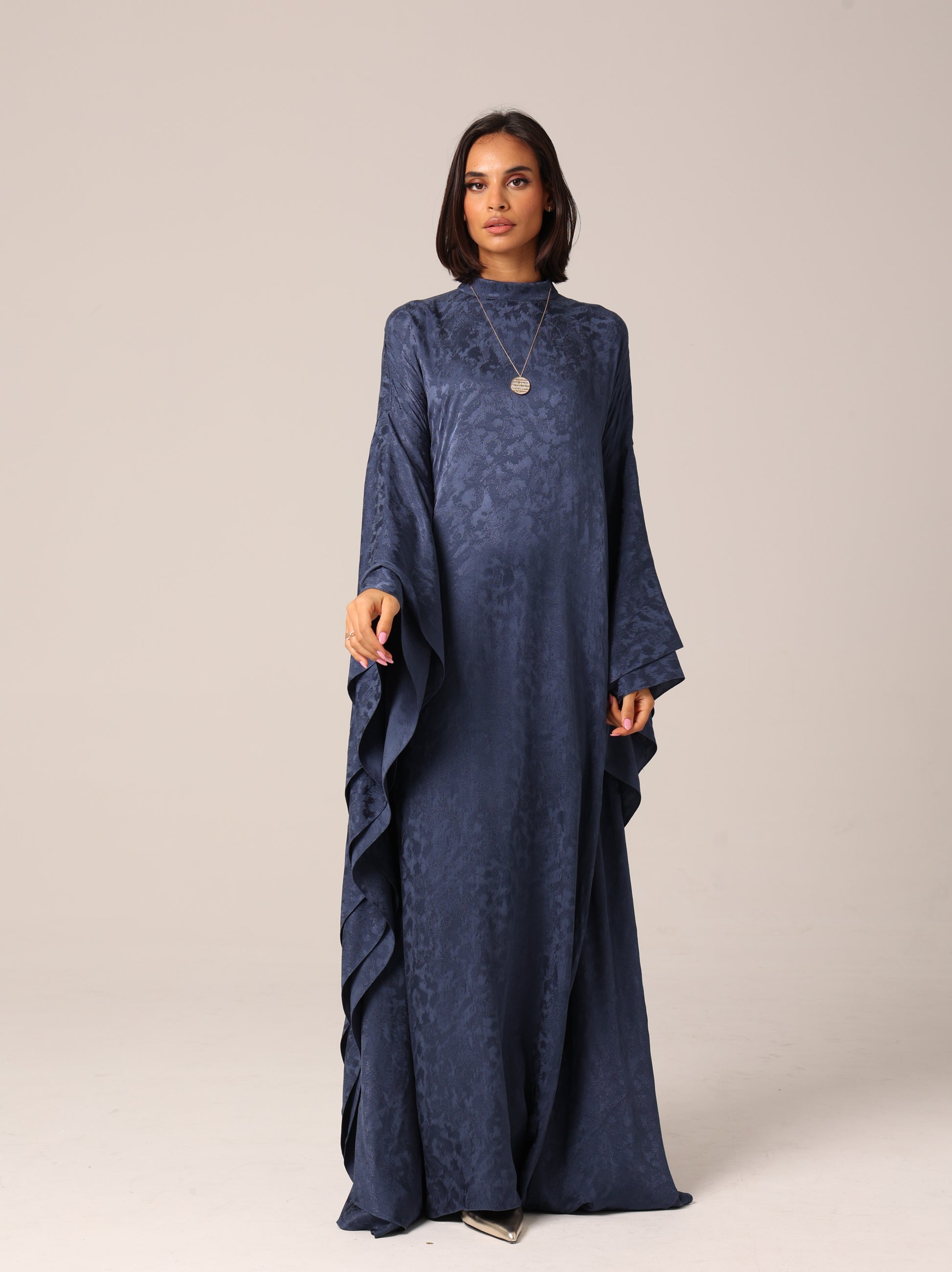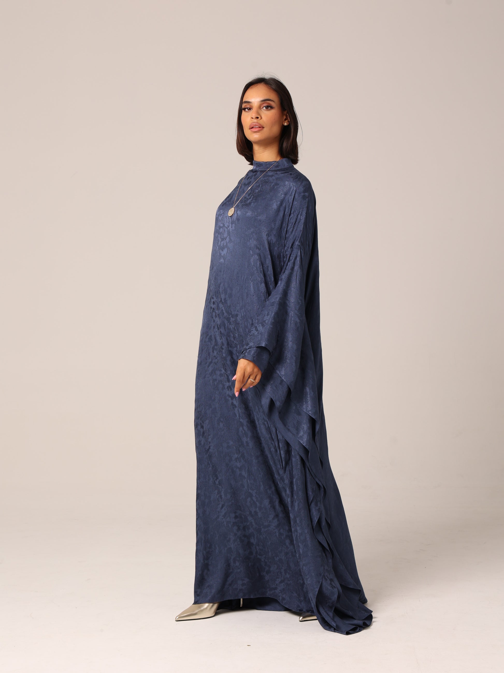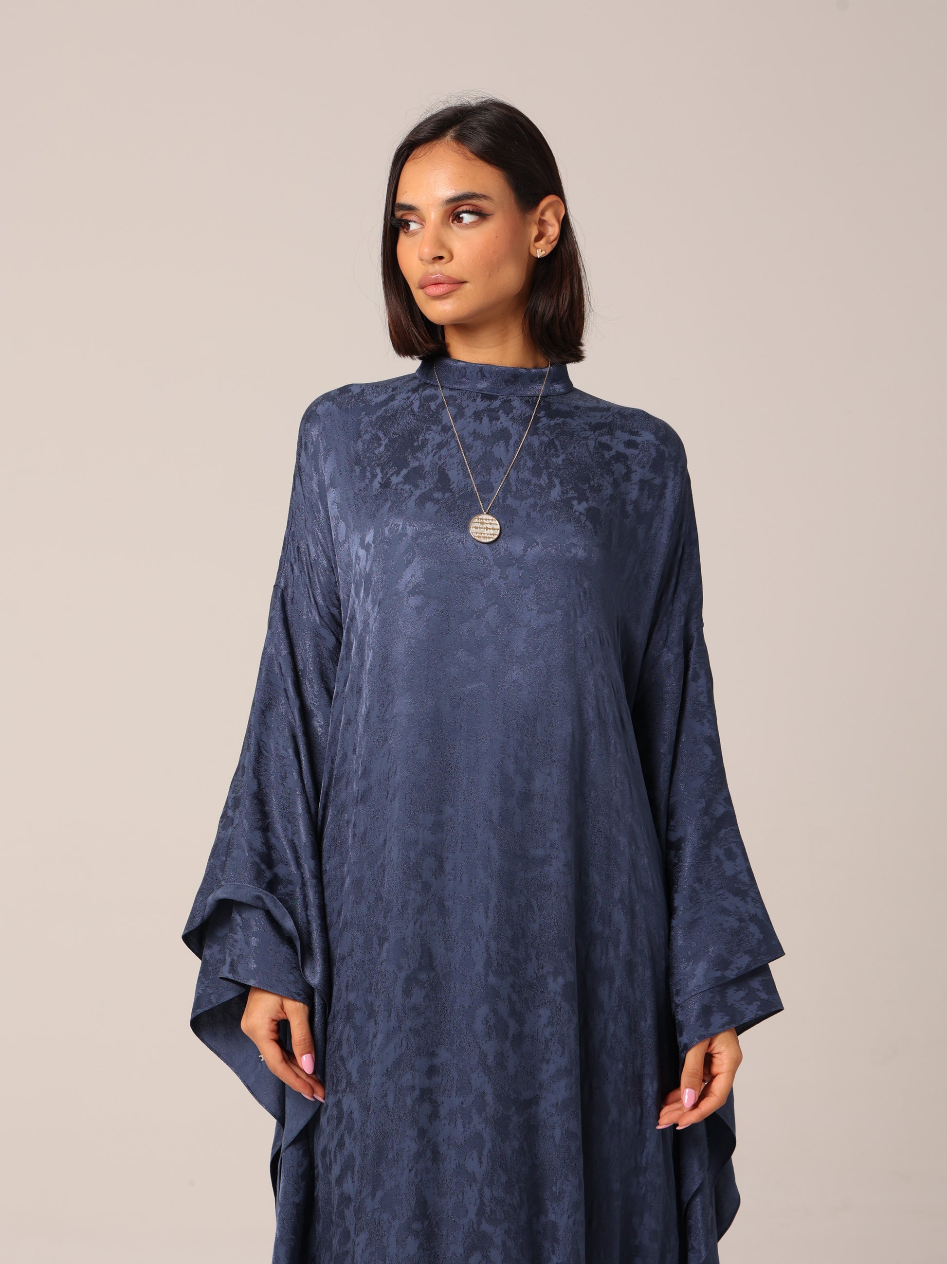 فستان من قماش الساتان الأسود الفاخر الأنيق بقصة اكس مناسب للبس تحت العباية أو مناسبة أنيقة بكم طويل