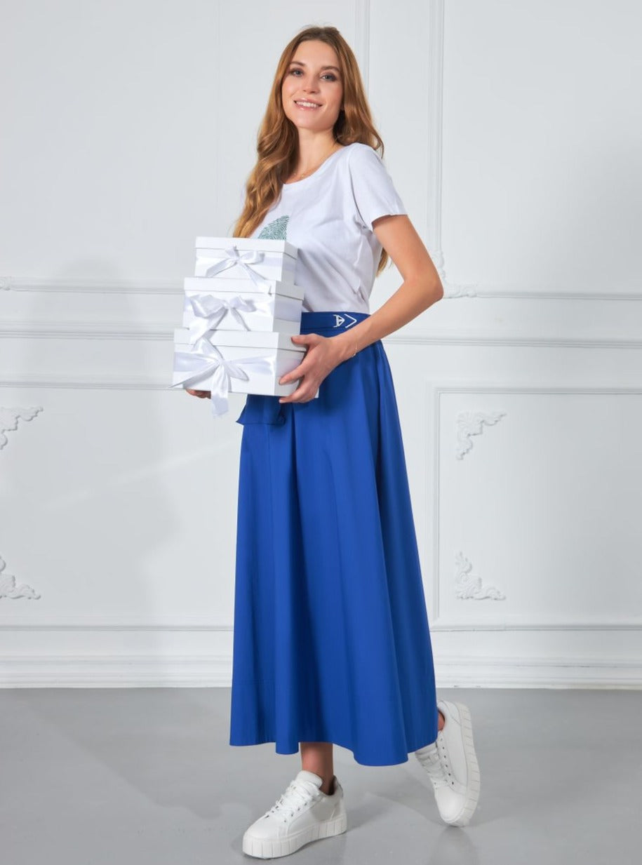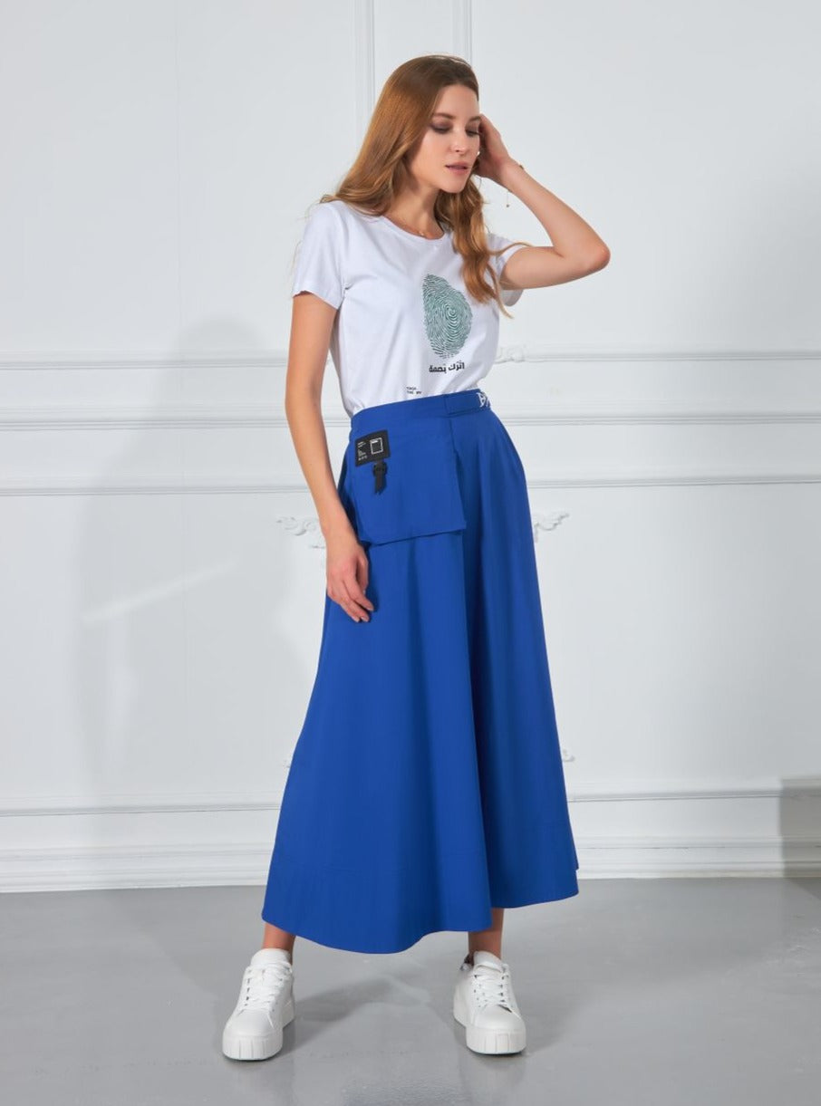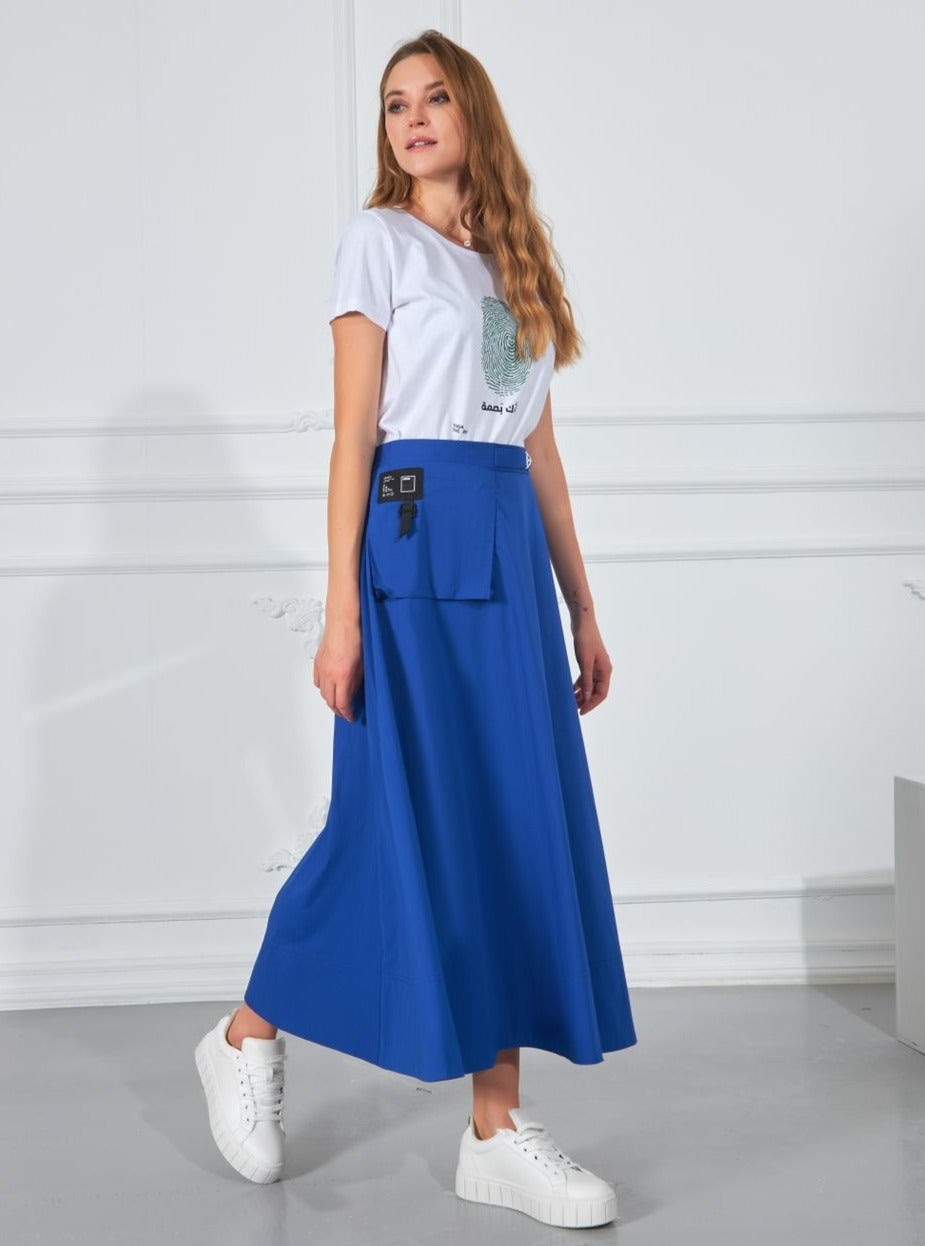 تنورة طويلة من قماش قطن مخلوط ليعطي احساس كاجول بارد و منعش , مزين باكسسوار جانبي أنيق