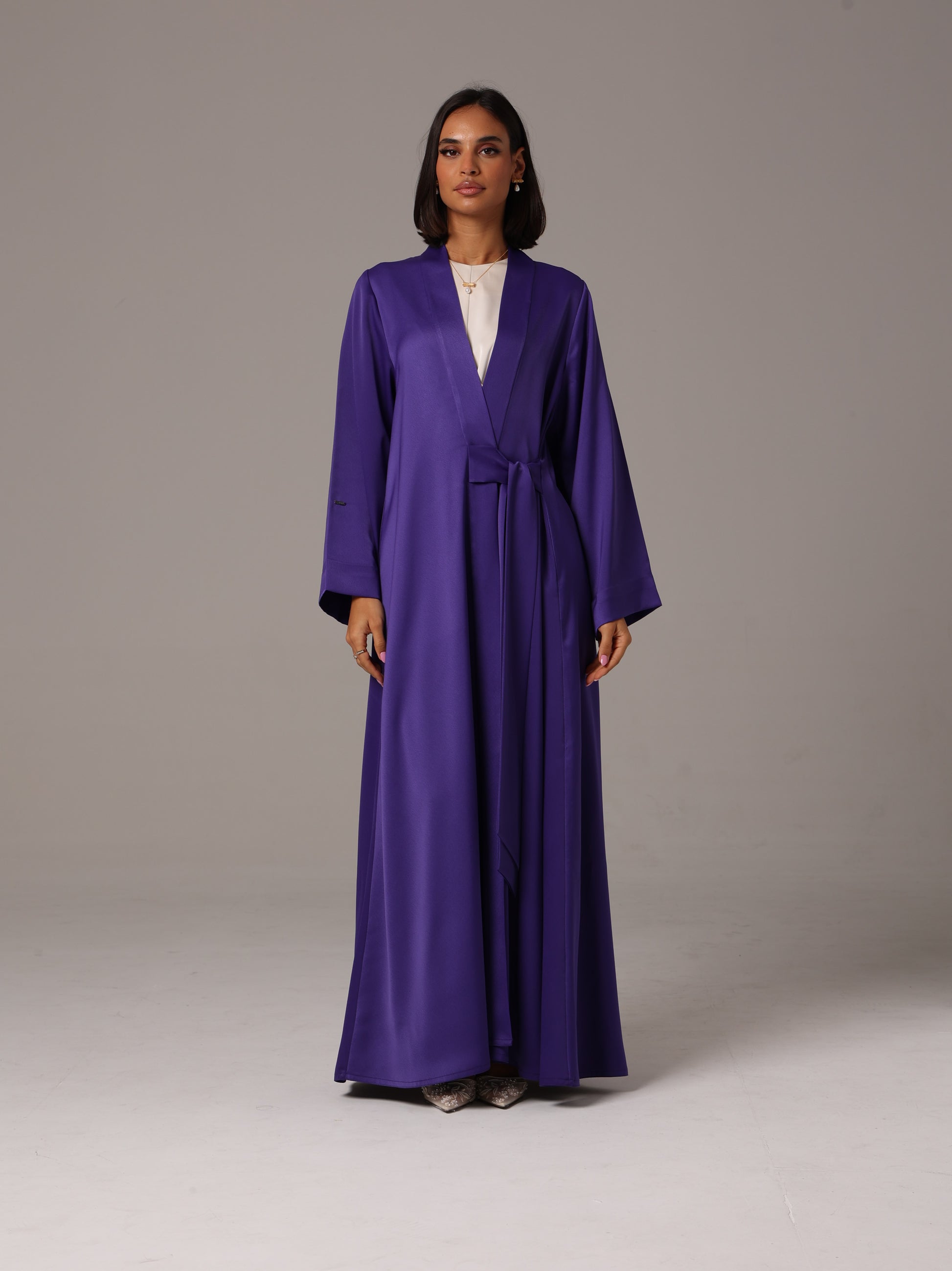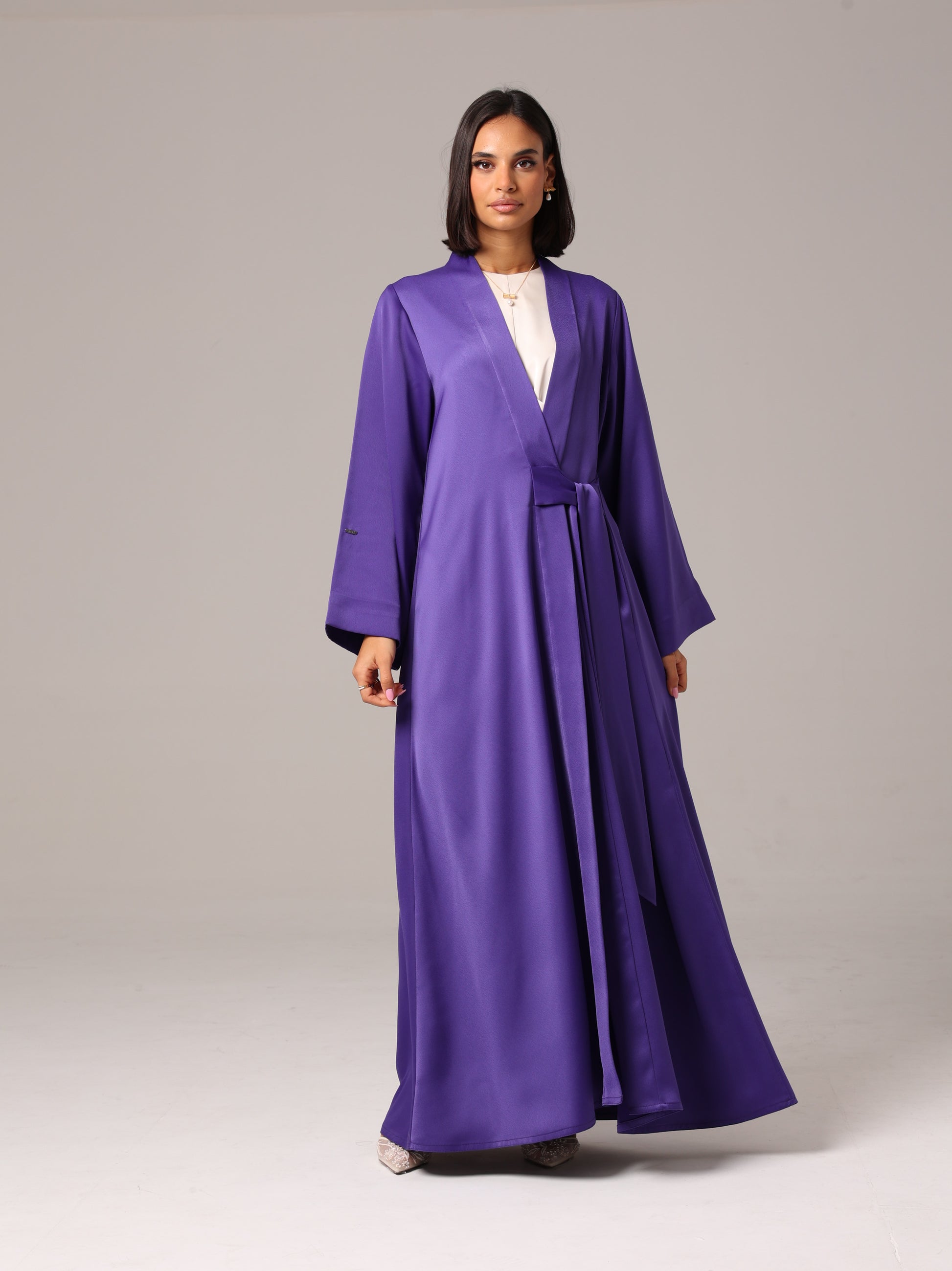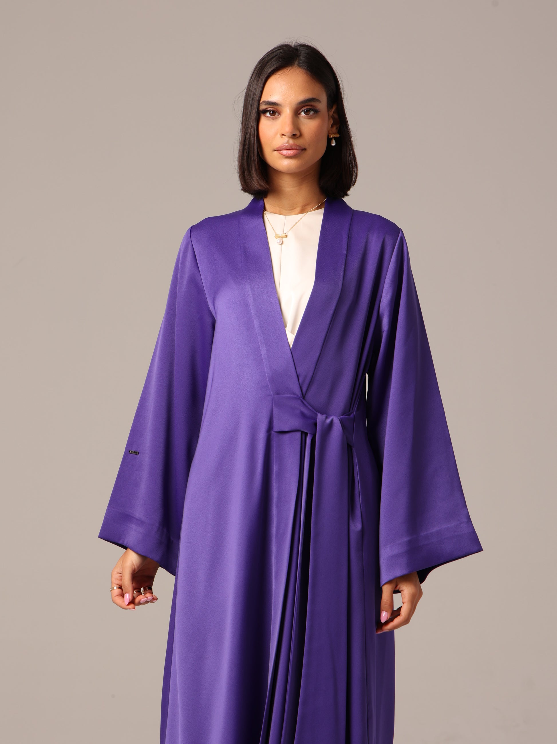 عباية من قماش الساتان الفاخر بقصة كيمونو أنيقة بربطة جانبية طويلة,