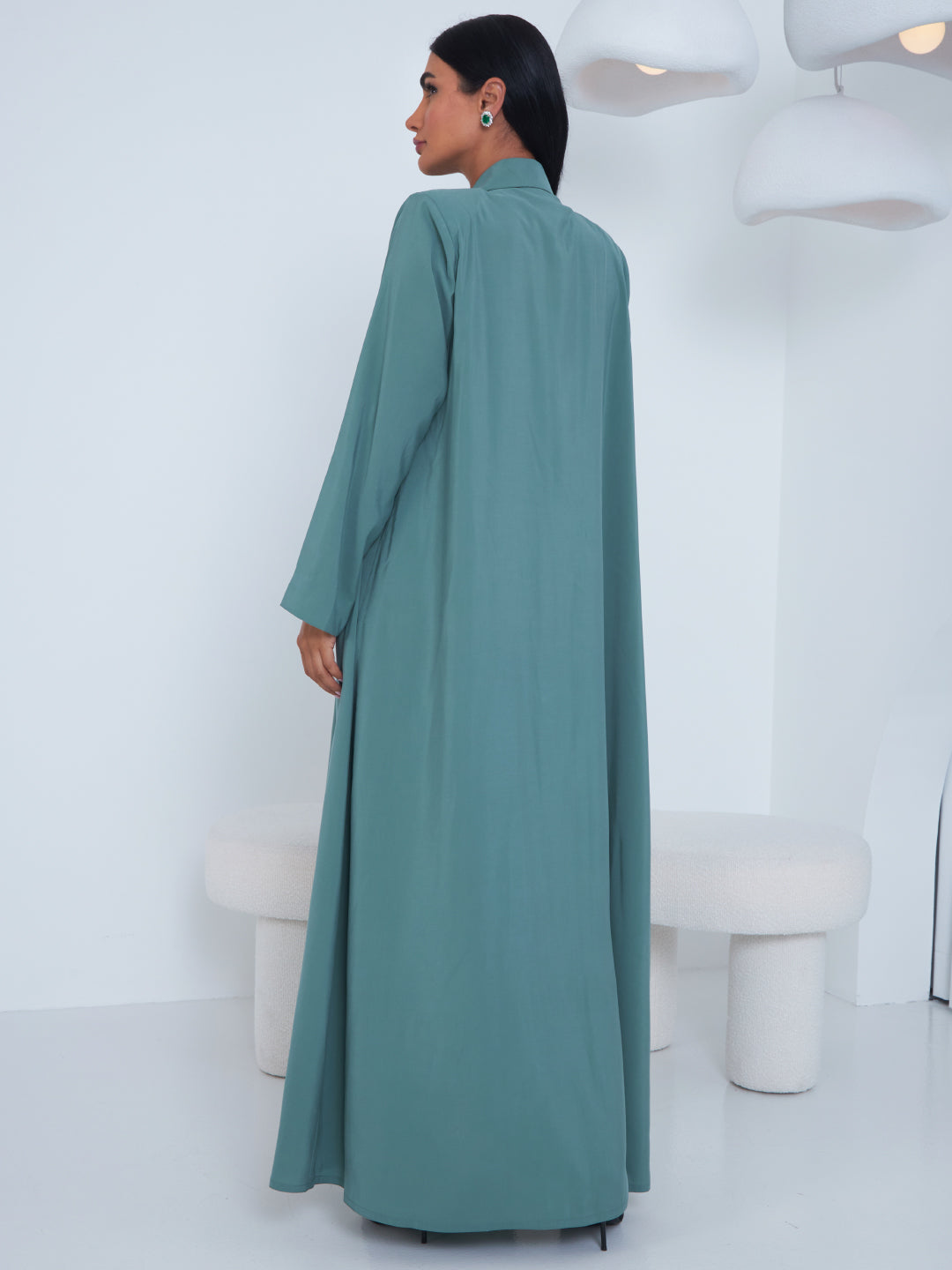 Abaya made of cupro fabric, with a classic collar.