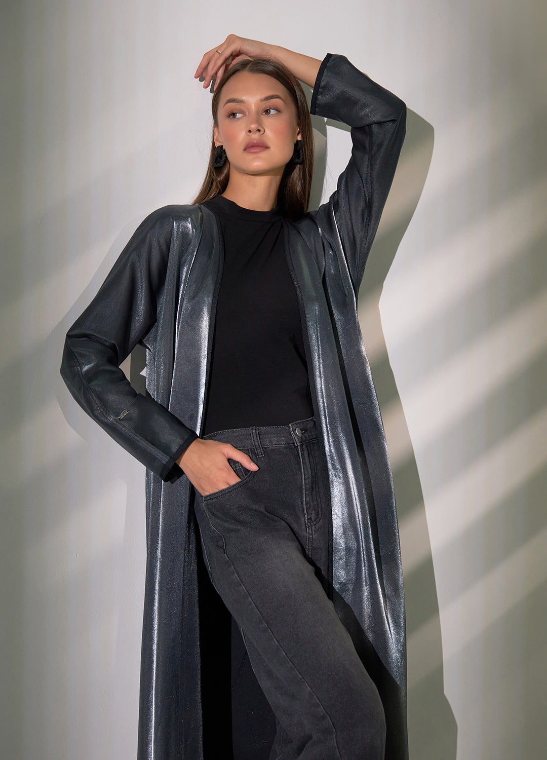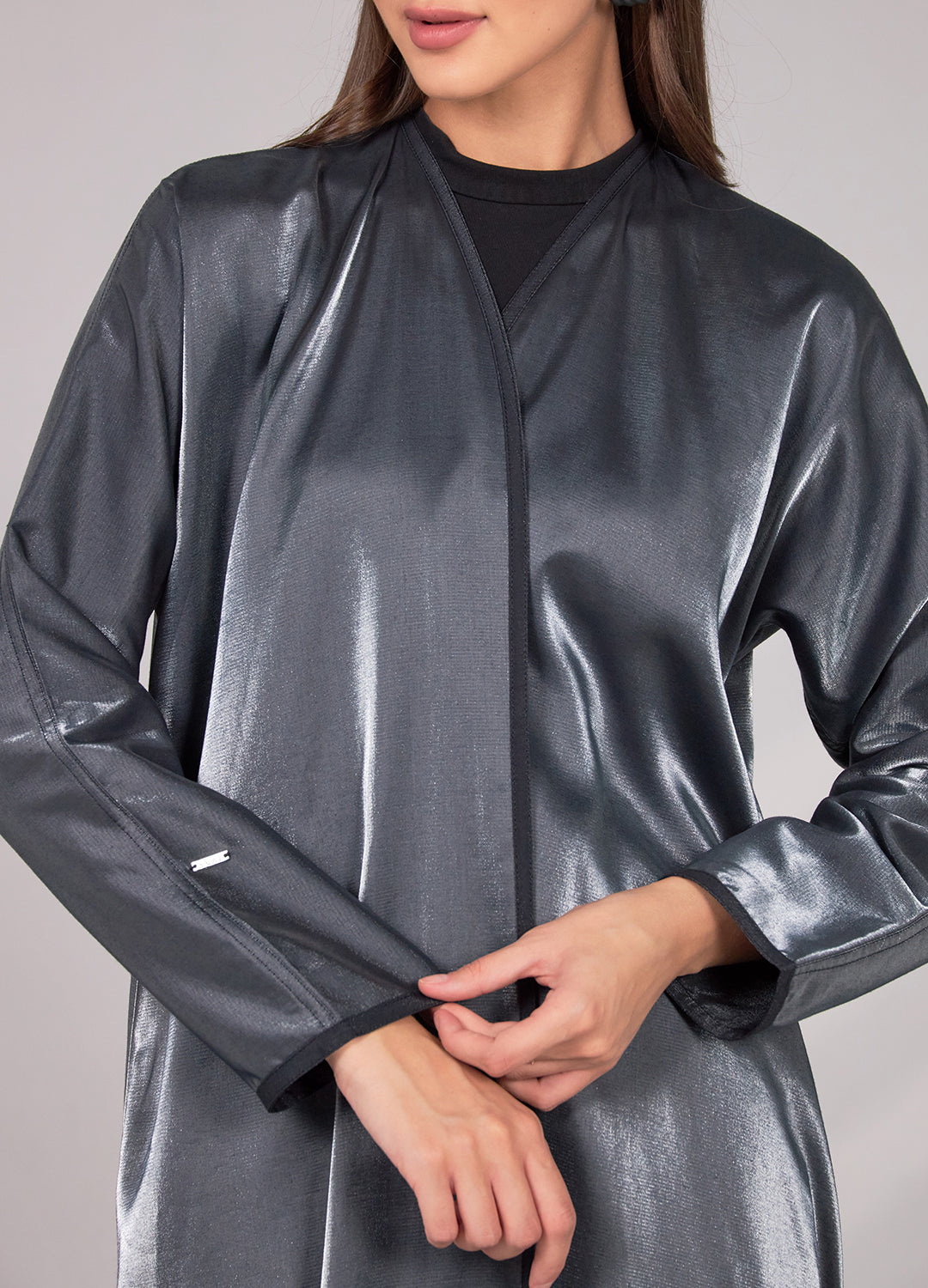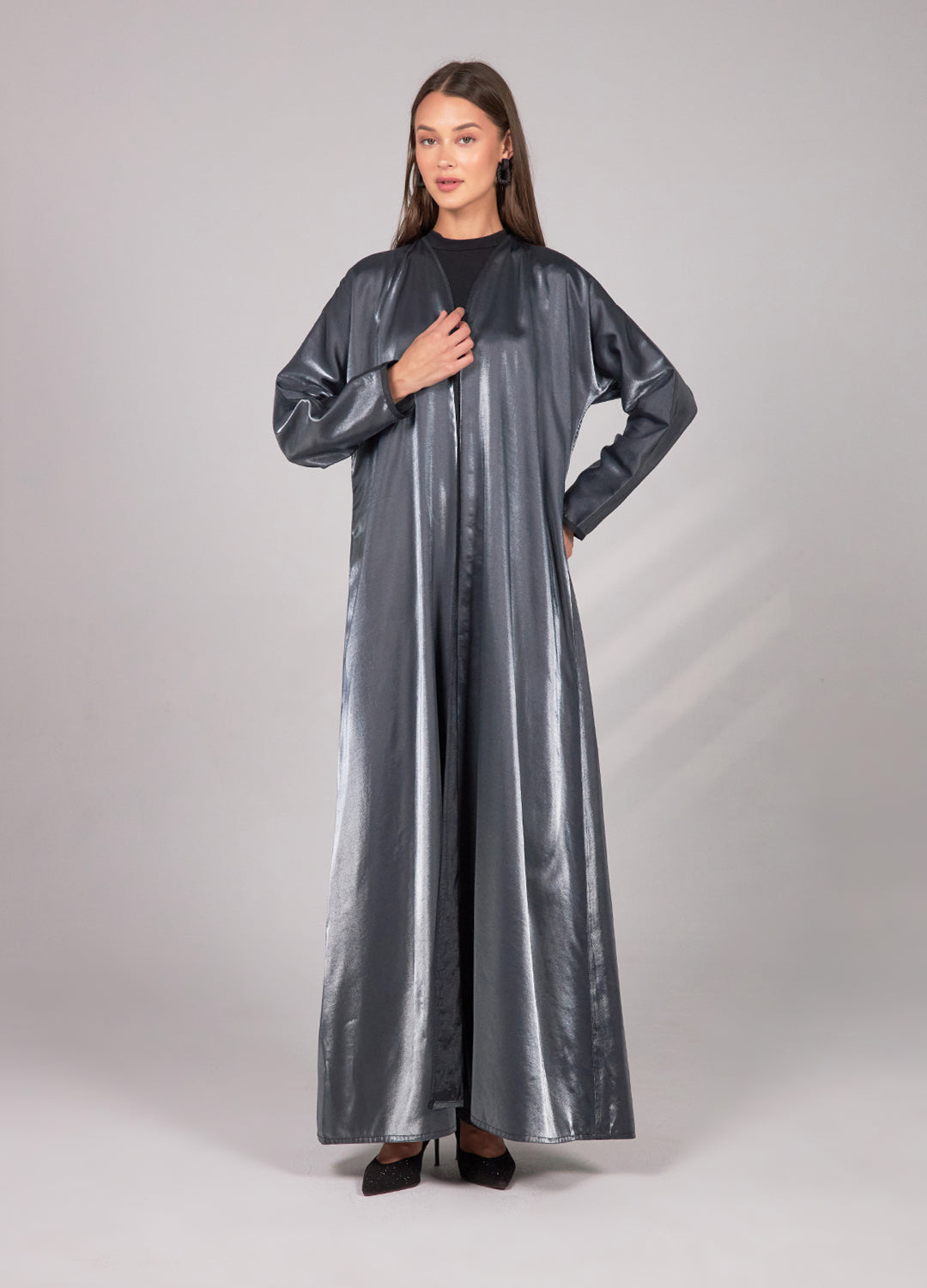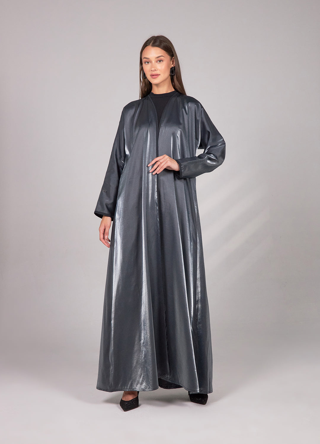 Grey Cotton Organza Abaya with Strong Luster, a practical summer piece crafted from durable European sustainable fabric, featuring an elegant cut .