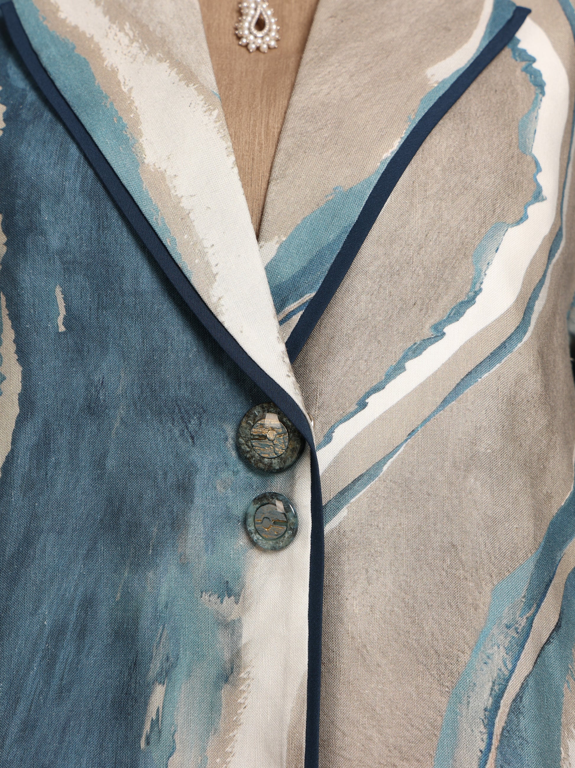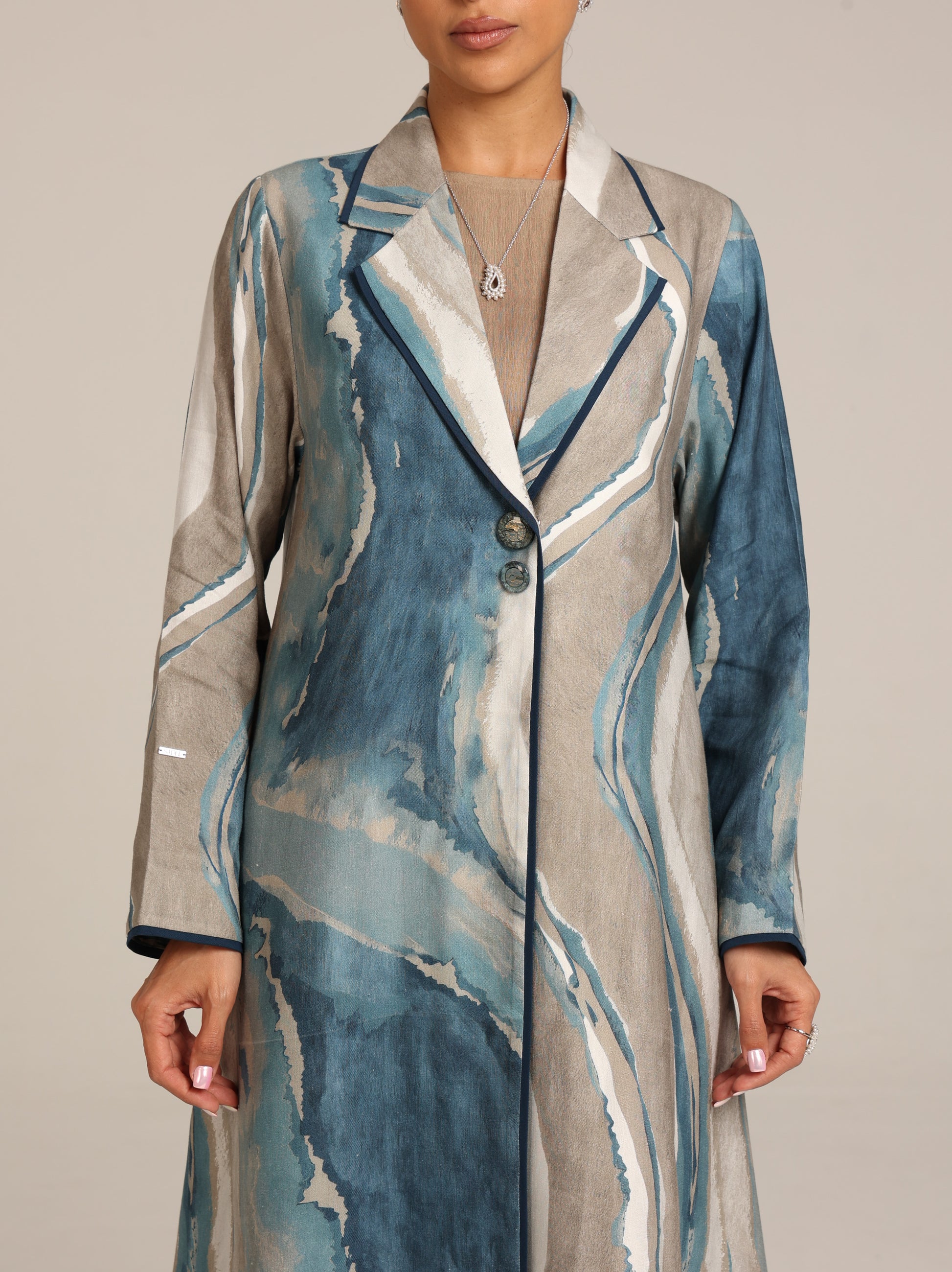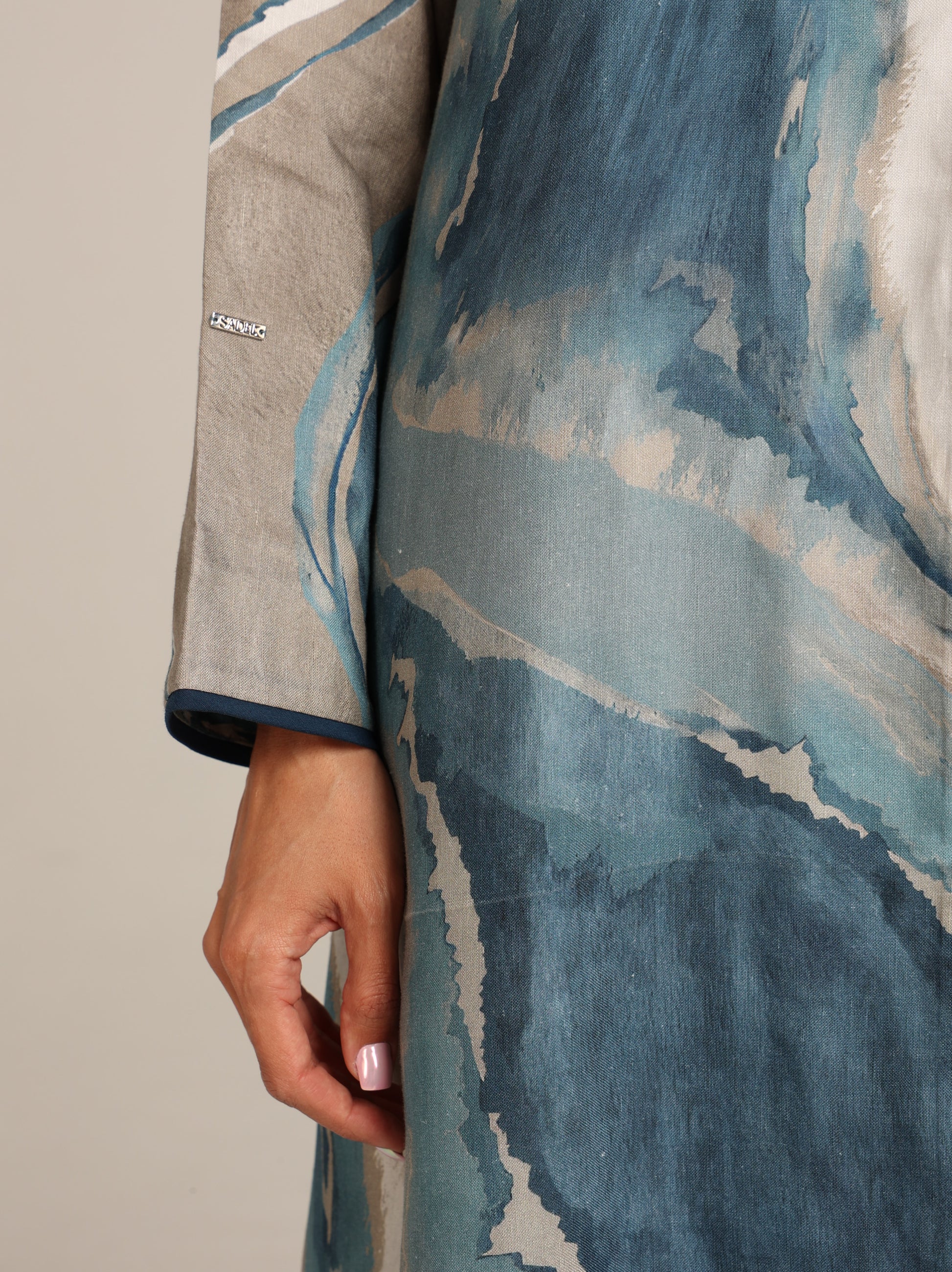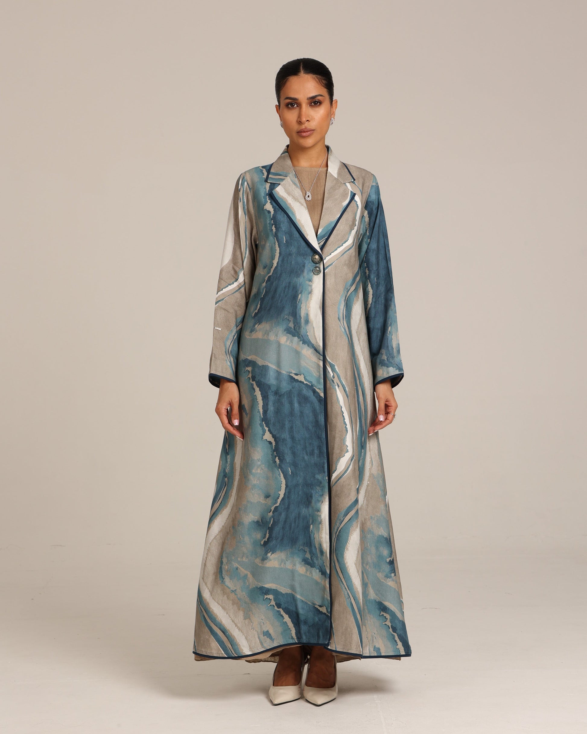 عباية من قماش اللينن المخلوط بالقطن الرائع ذو جودة عالية ، و أزرار مميزة لتكون عباية باردة و عملية ومريحة ، تحمل روح اللينن الطبيعي لكنها لا تتكسر ، مثالية للسفر و العمل و الجامعة و لكل يوم