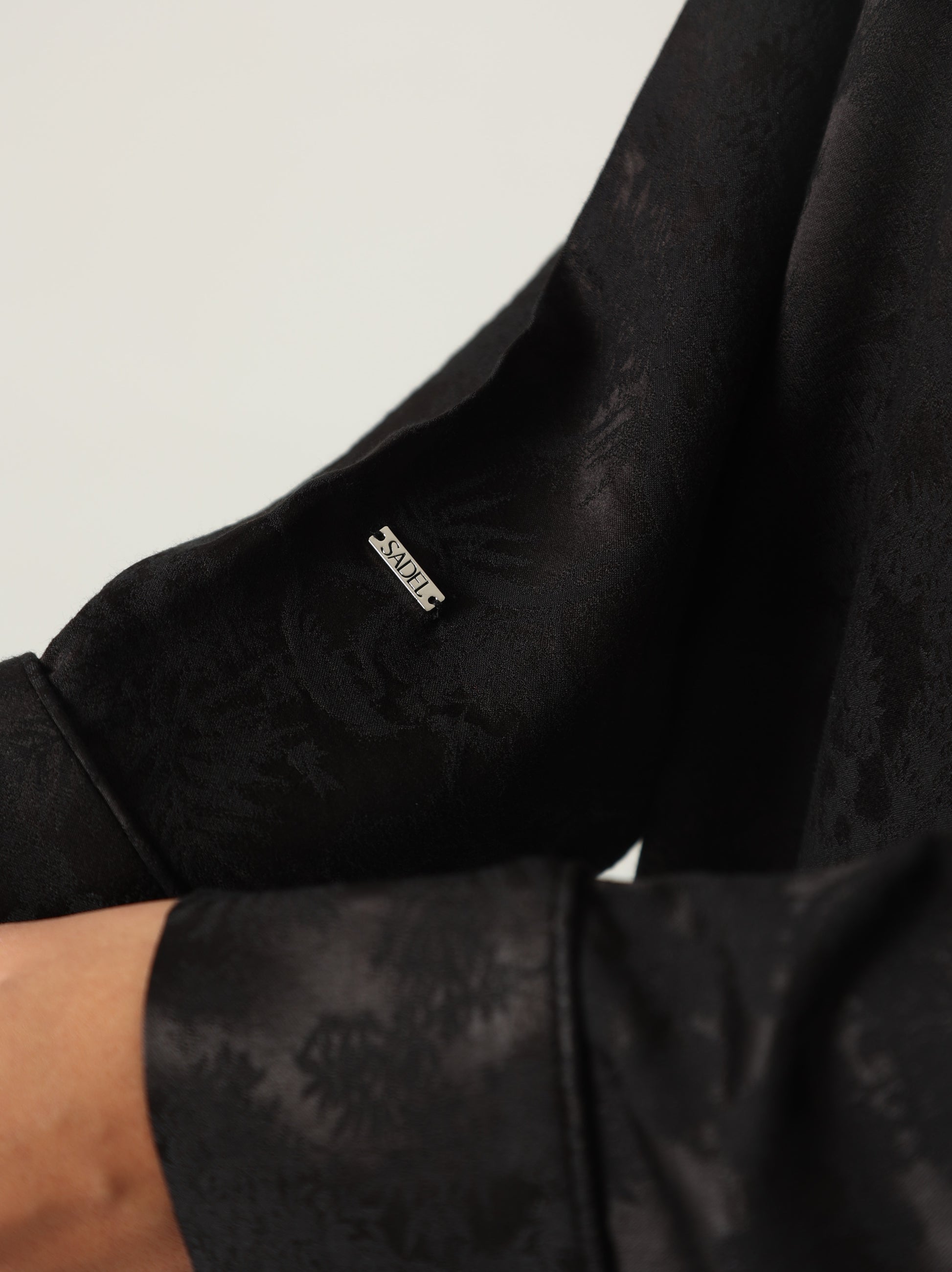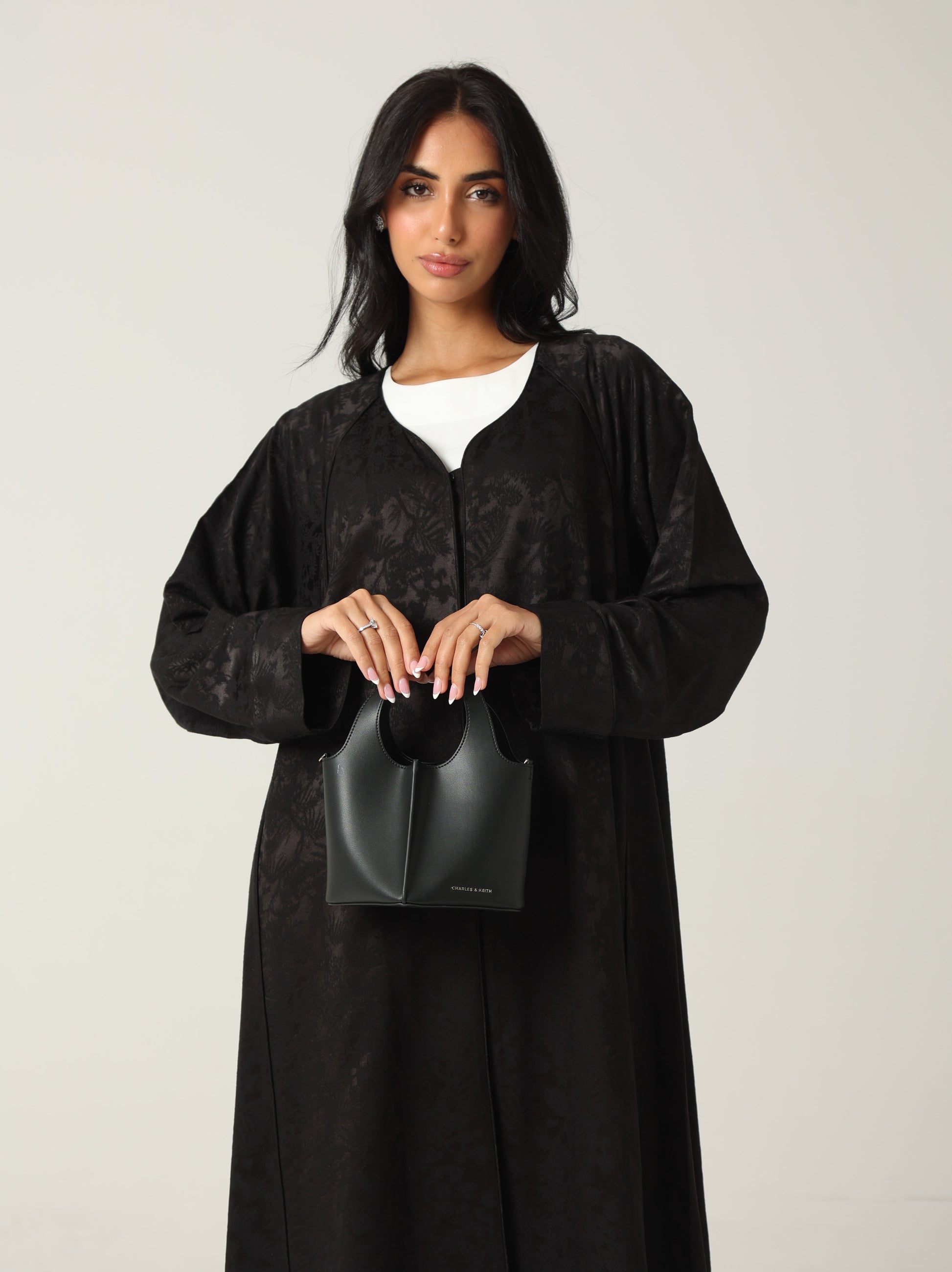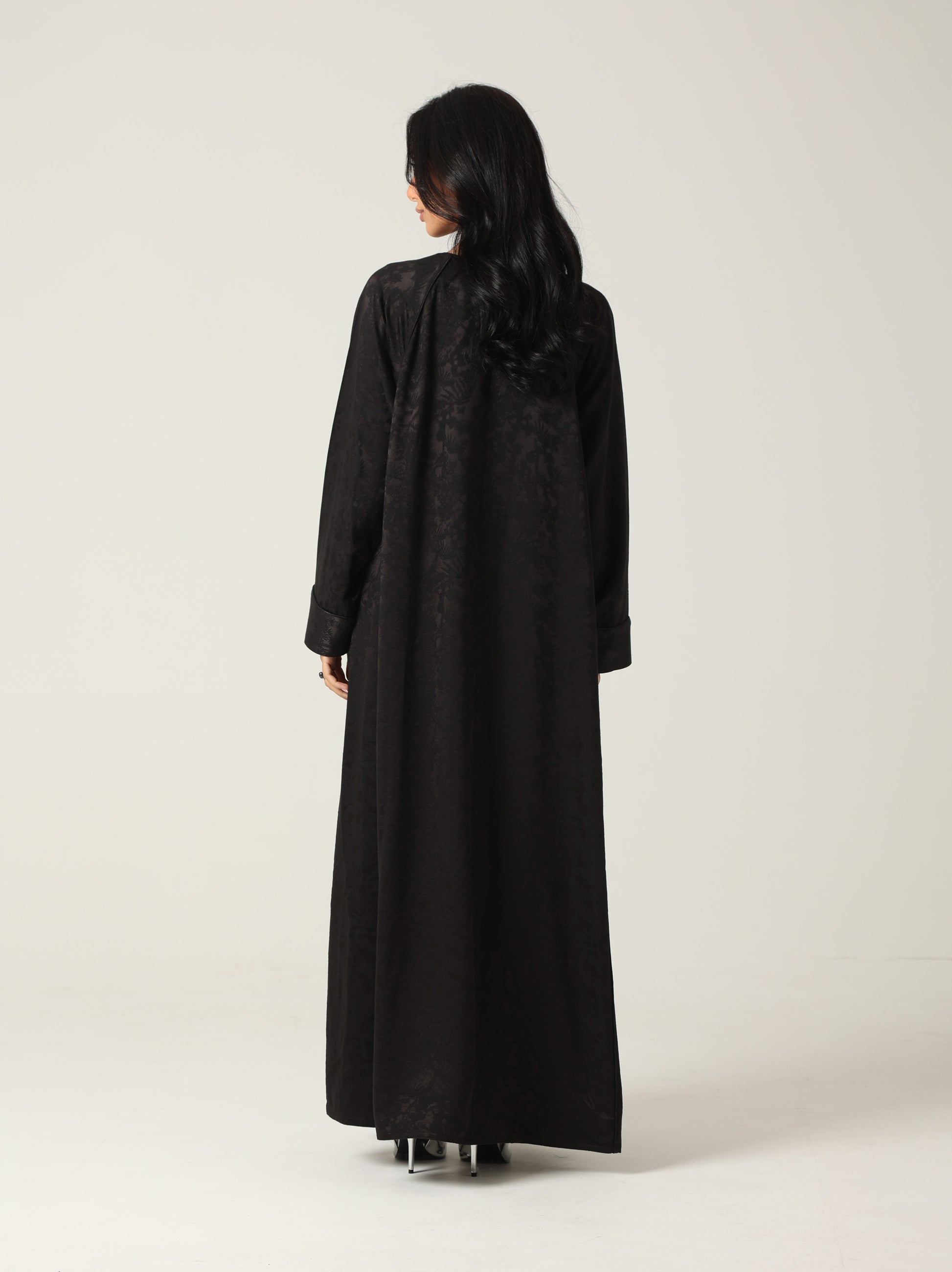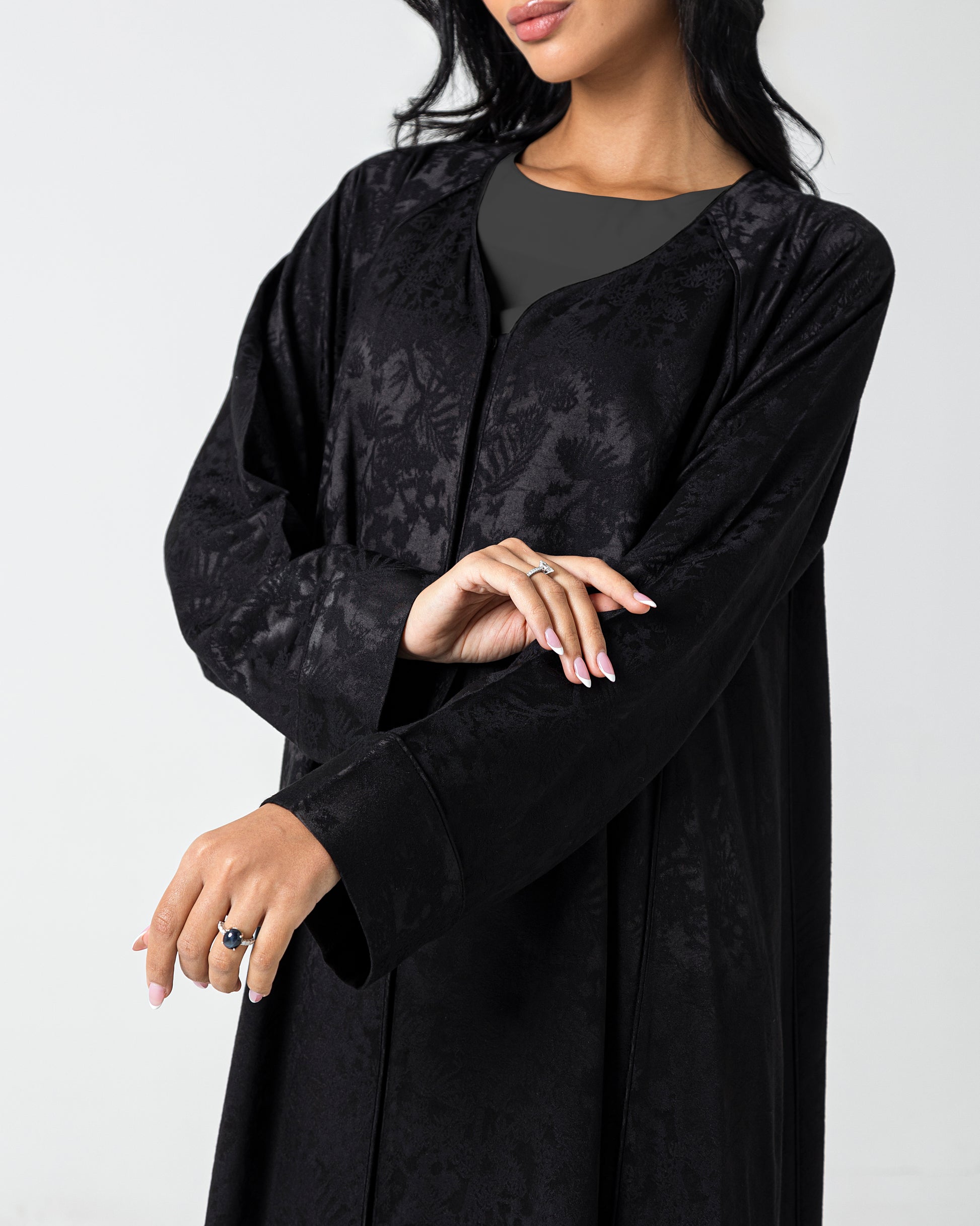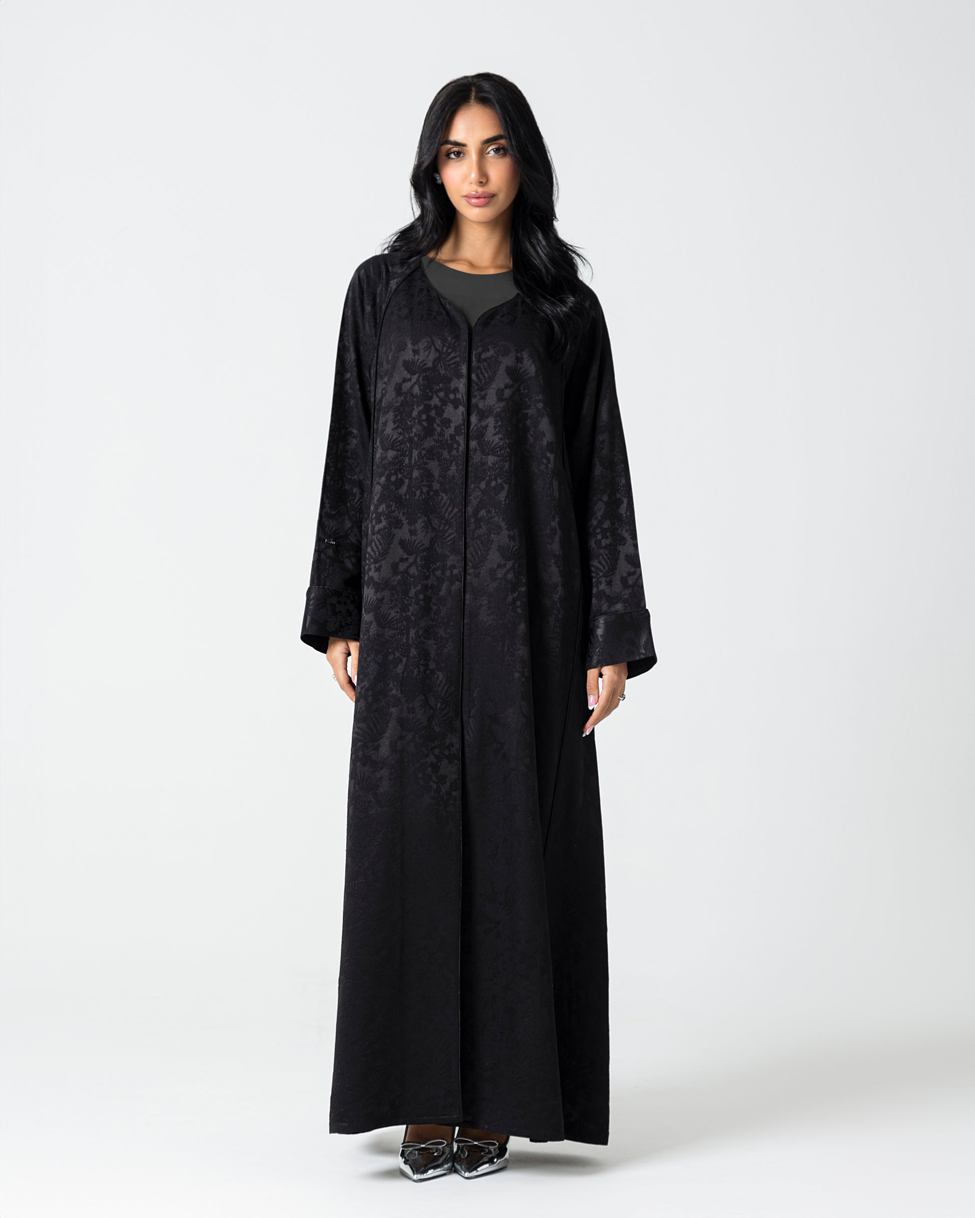 عباية فخمة من قماش الجاكار الساتان، يتميز بنقوش تعكس الفخامة والرقي