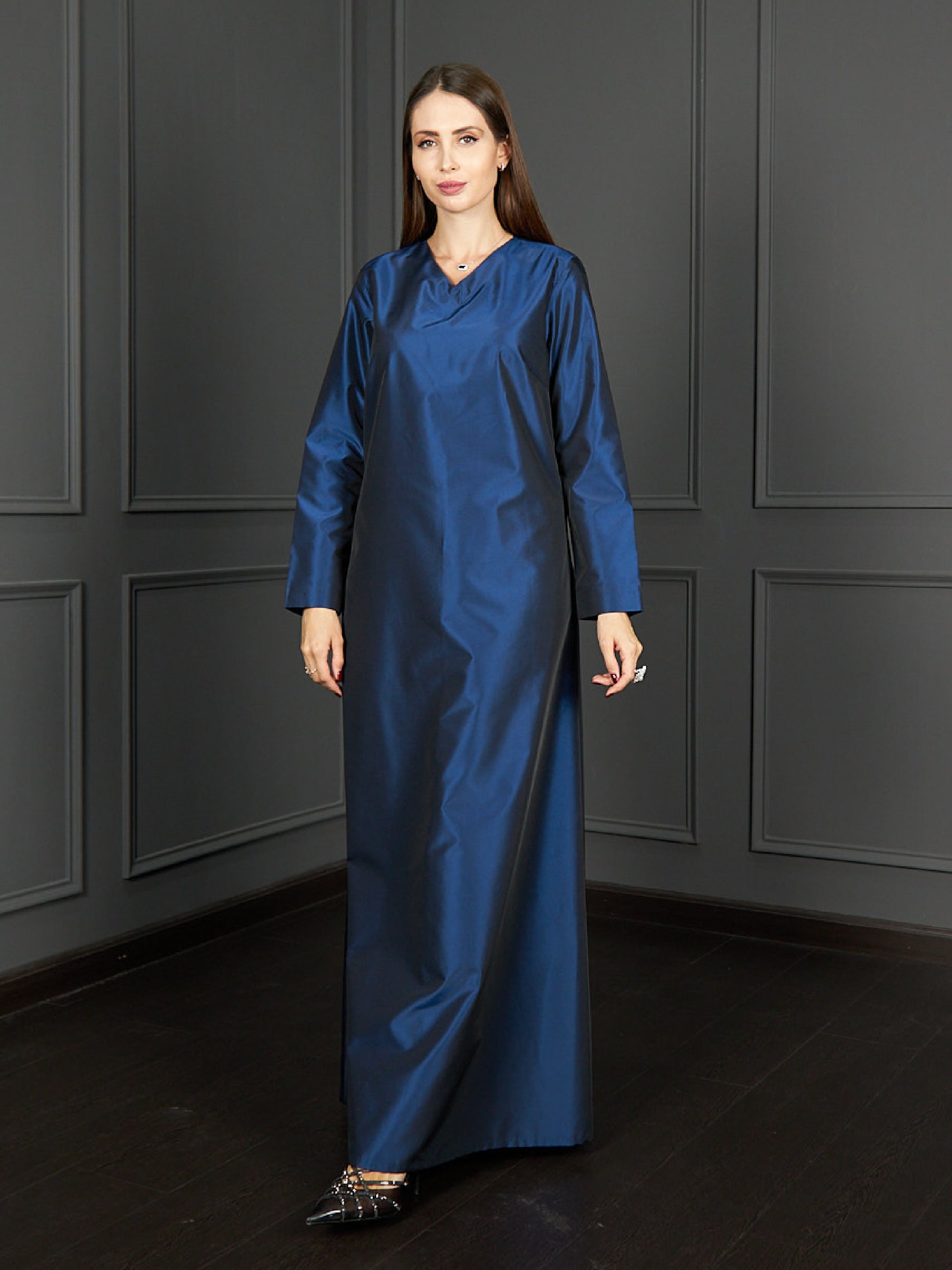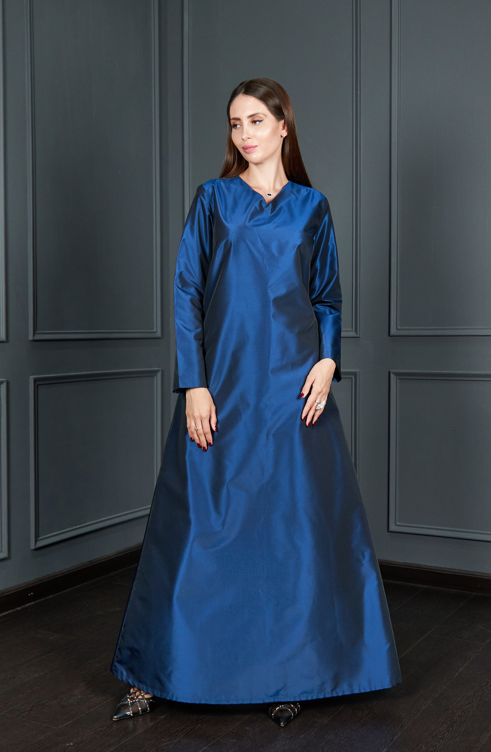 فستان من قماش التفتا الفاخر , اللون اللأزرق الملكي الرائع , اختاريها بكم طويل أو كم قصير