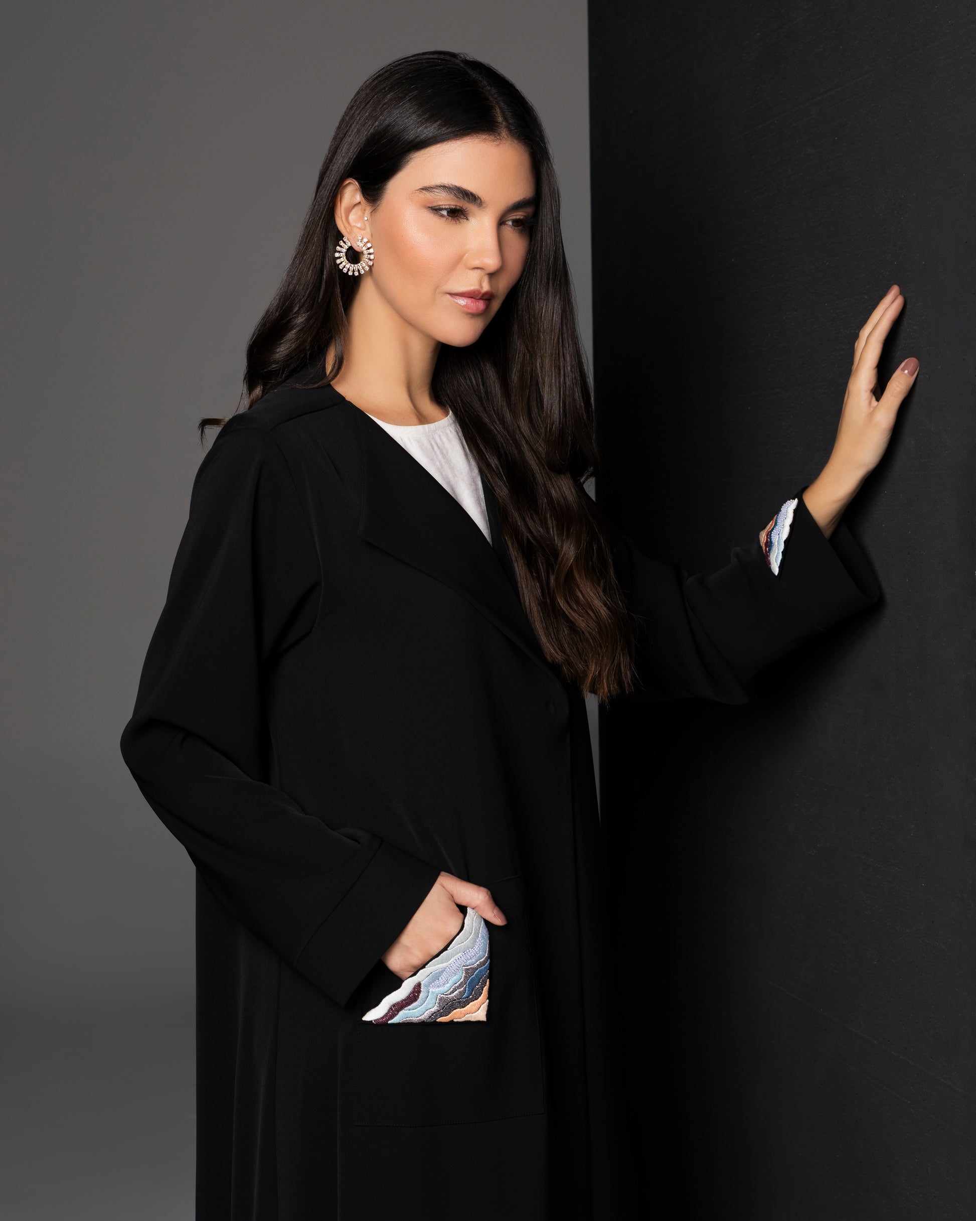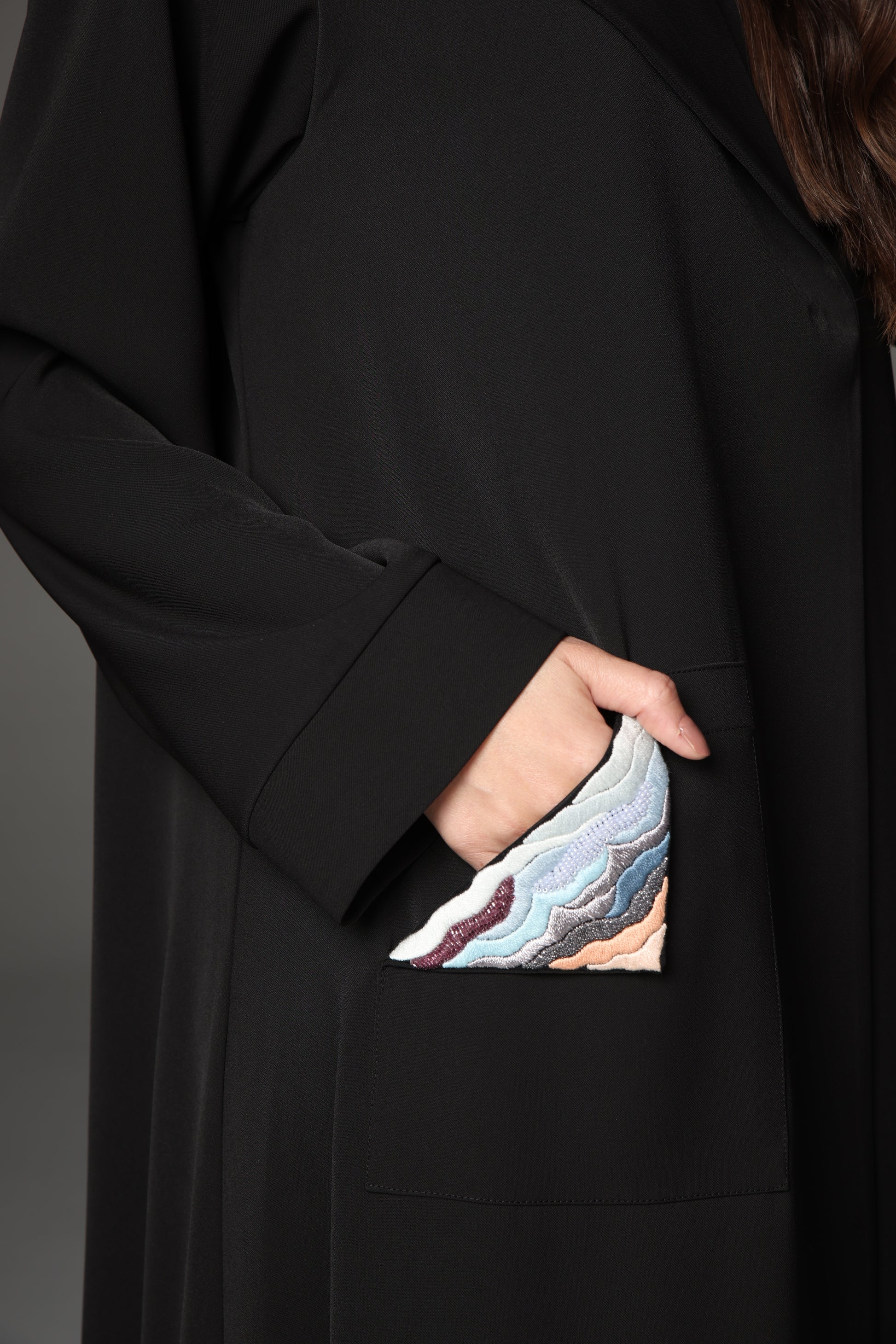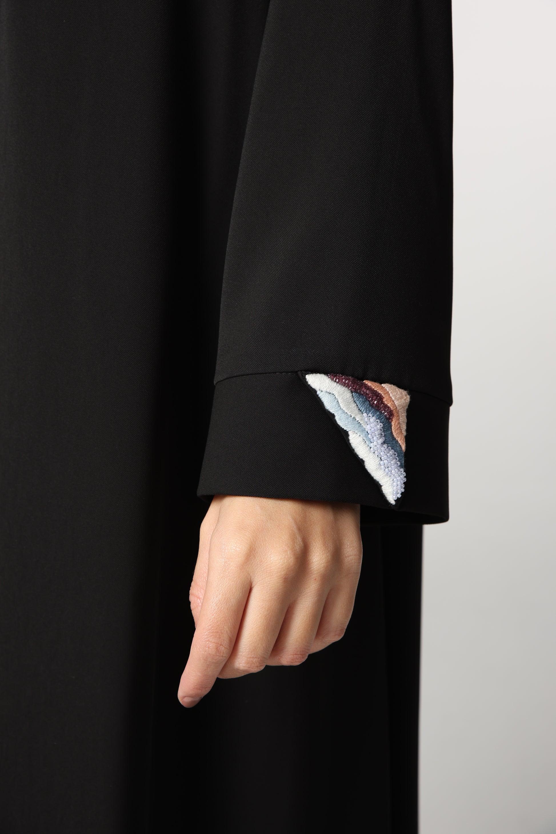 Designed with elegance for a stylish Abaya , this abaya made of Luxurious Spanish crepe fabric with Hand Embroidery and Beading.