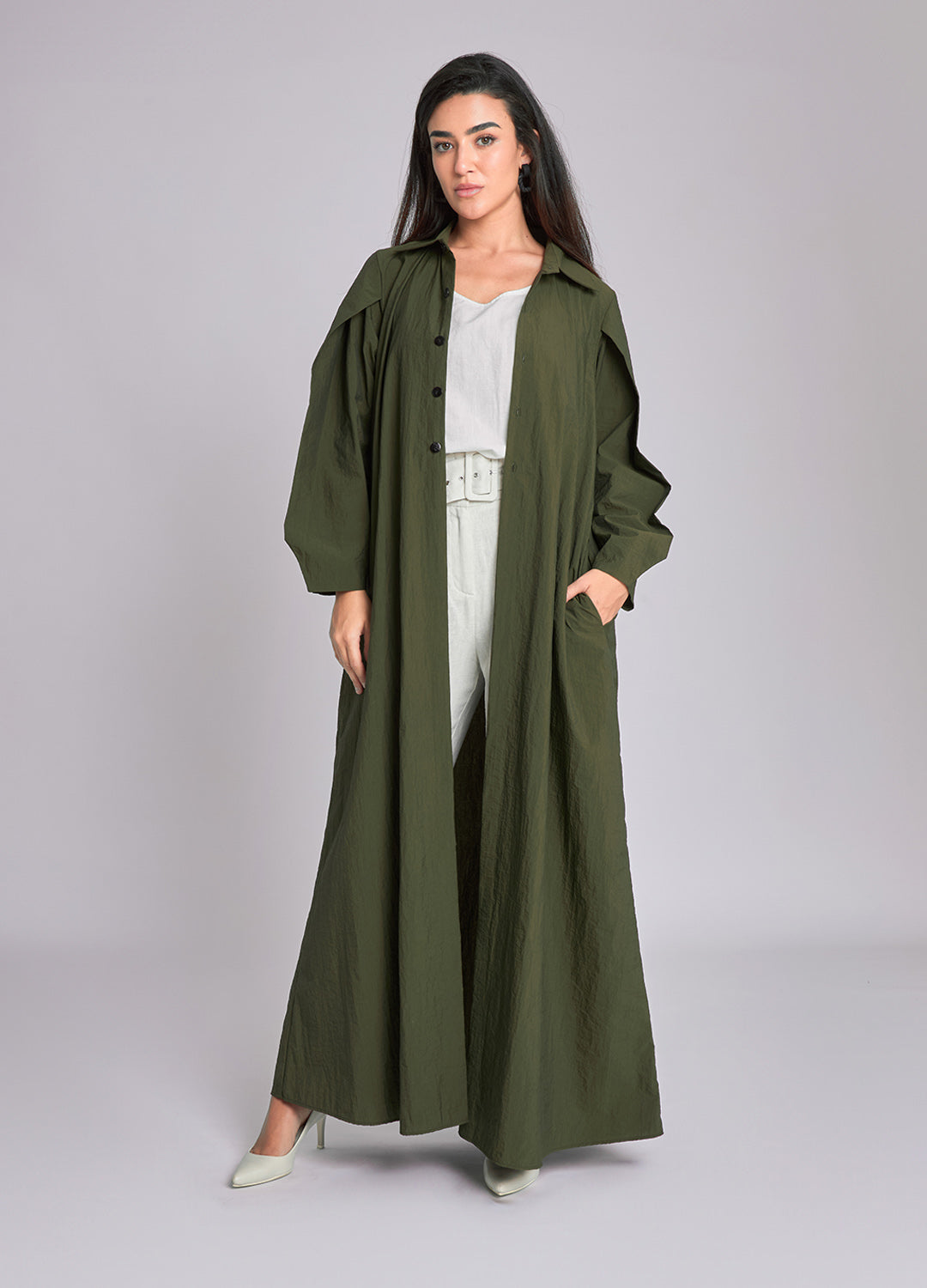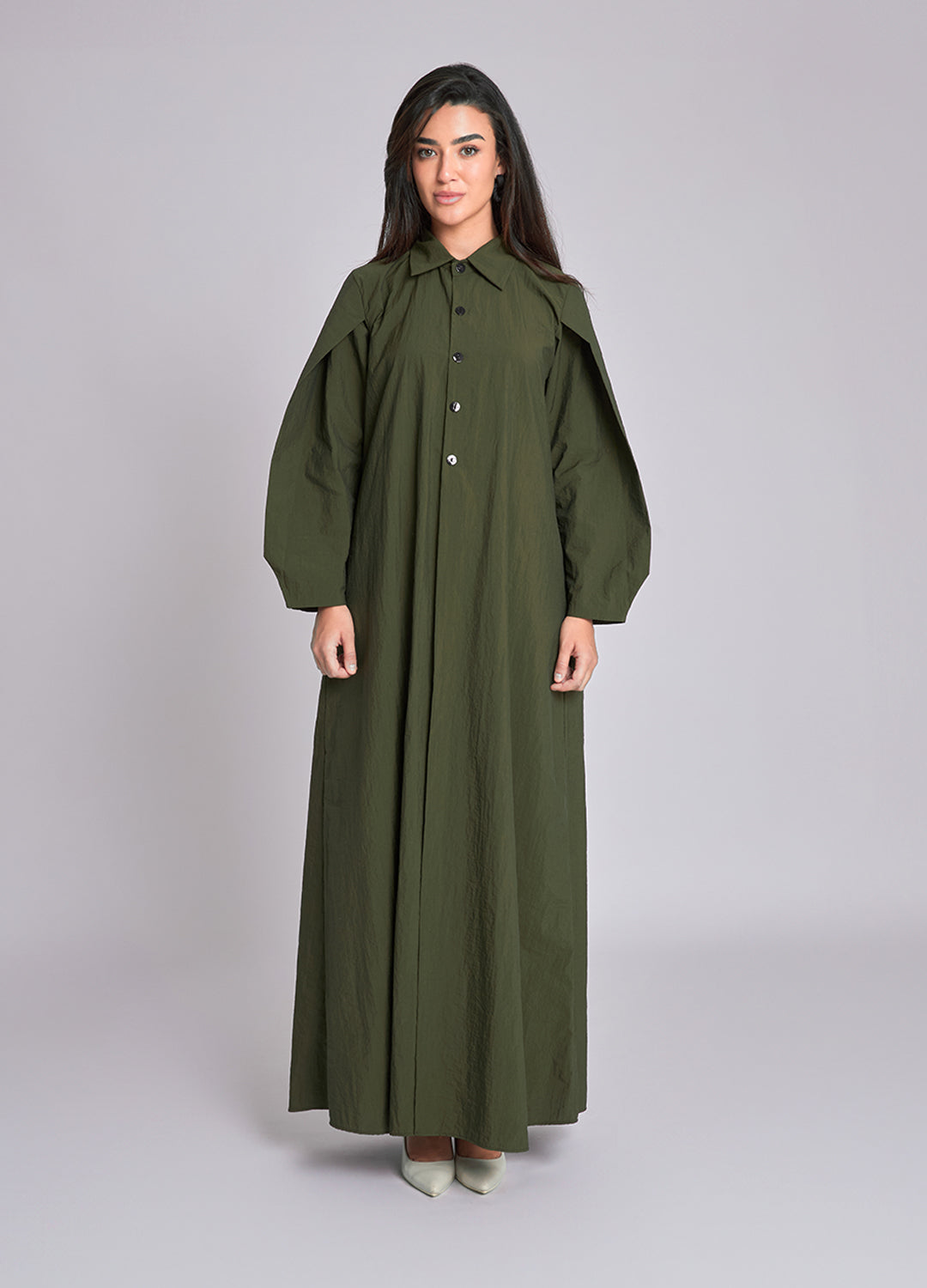عباية بقصة قميص من مجموعة "سيلفا (أرض الخشب)"، مصنوعة من قماش عالي الجودة ومستدام، تتميز بأناقتها الصيفية بامتياز . سواء نسقتيها مع ملابسك مفتوحة أو مغلقة، فهي تضفي لمسة عصرية وأنيقة على إطلالتك . كل تفصيل في هذه العباية هو جزء من رسالتها المميزة