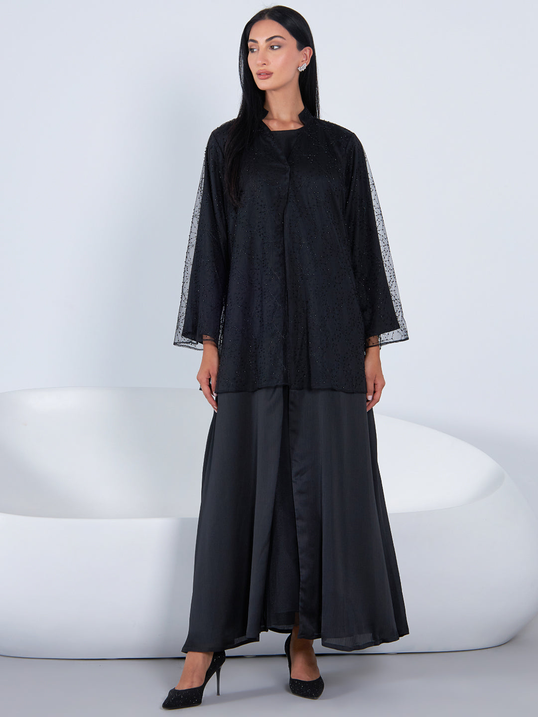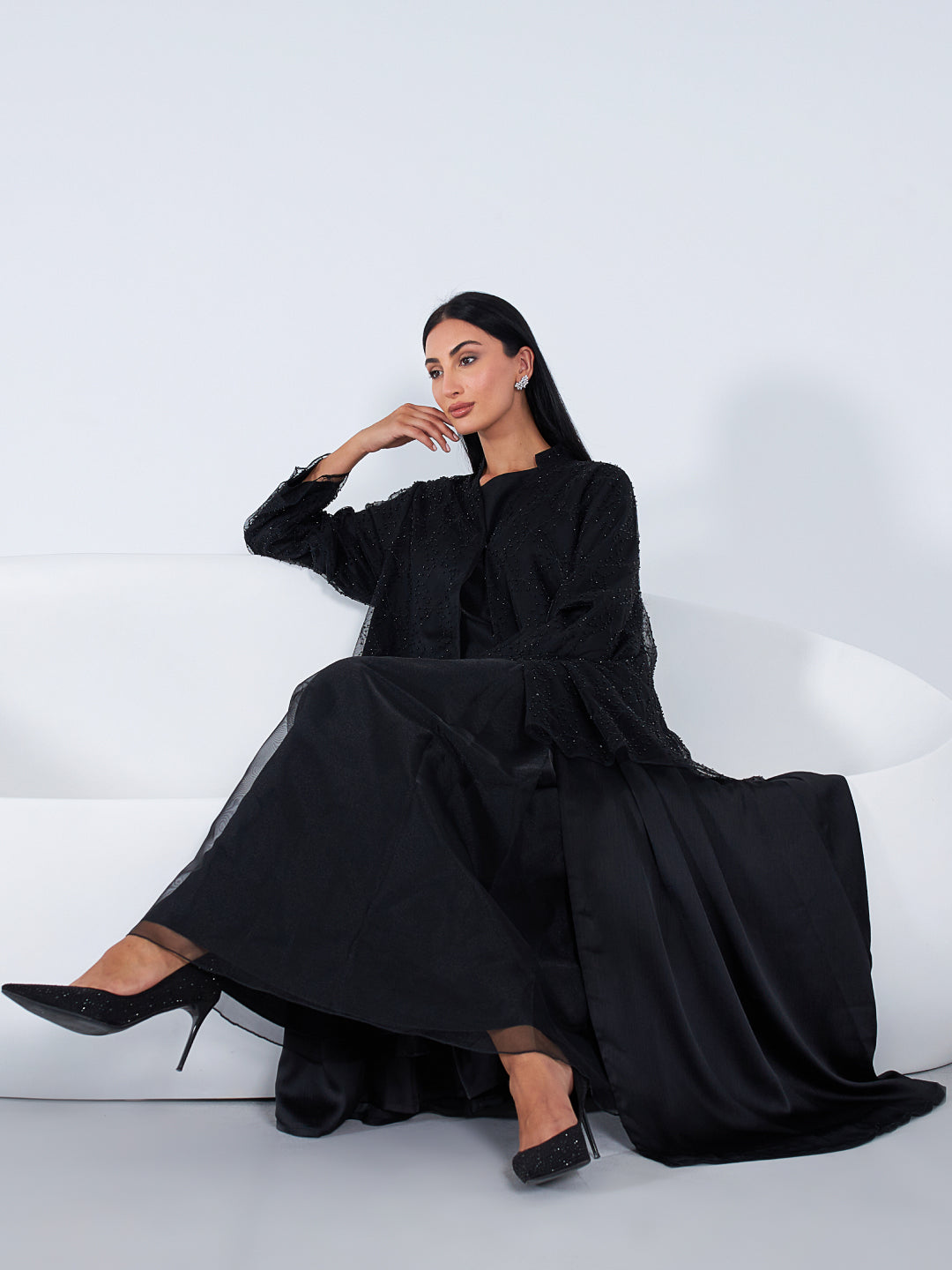 صممنا قماش الحرير مع قطعة إضافية من التول المشكوك ، لإطلالة أنيقة راقية و فاخرة