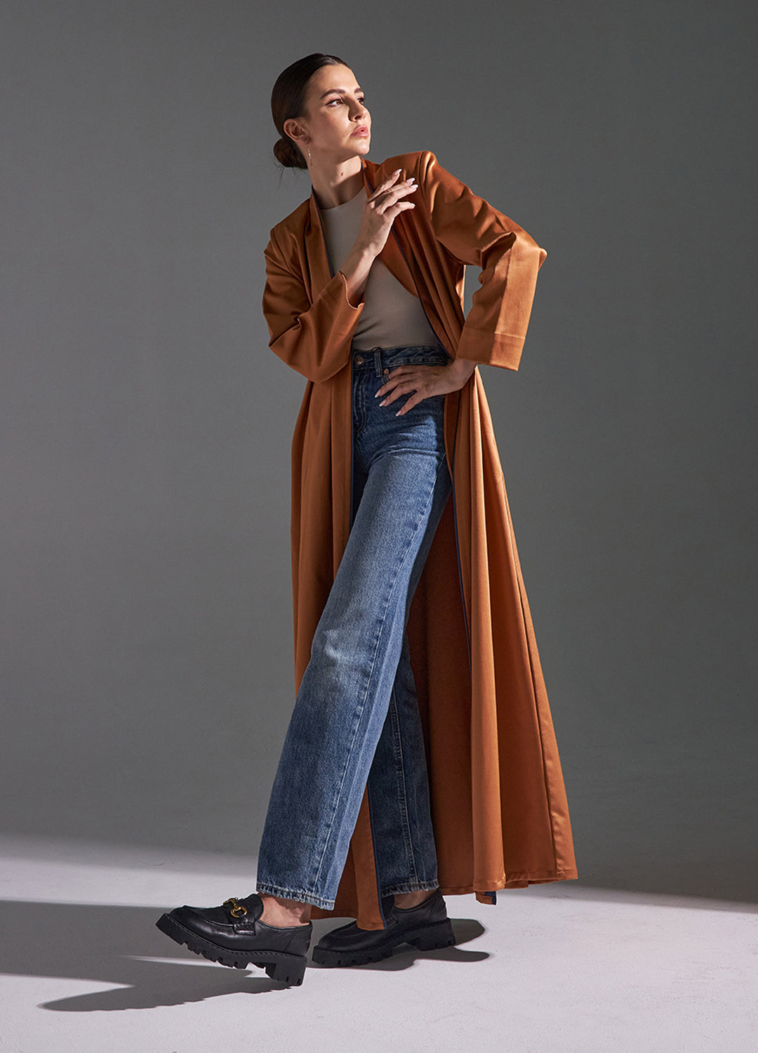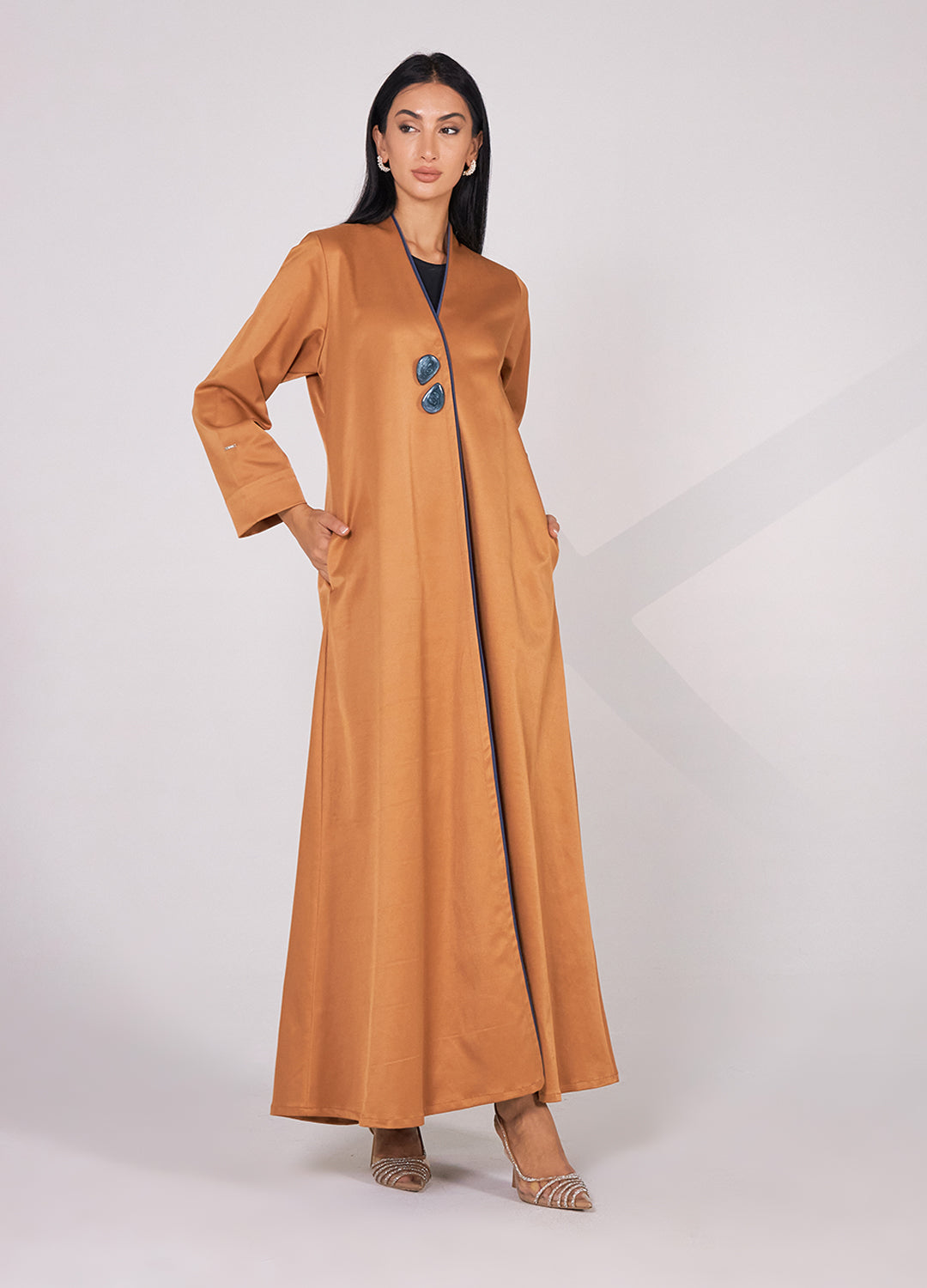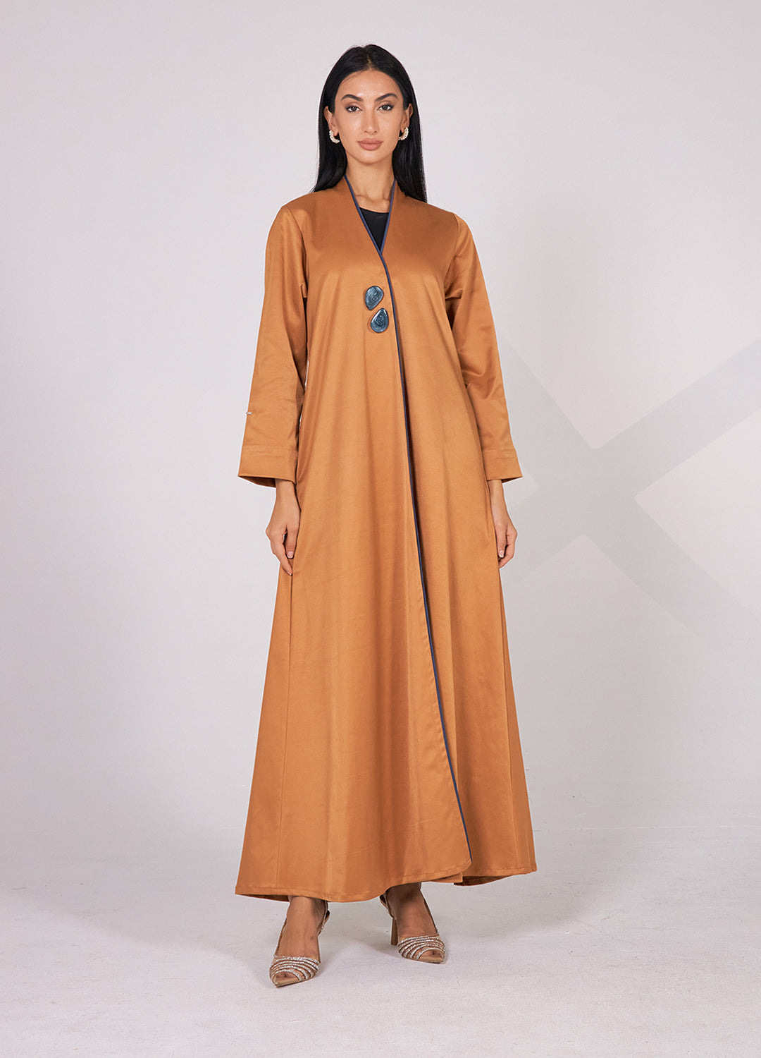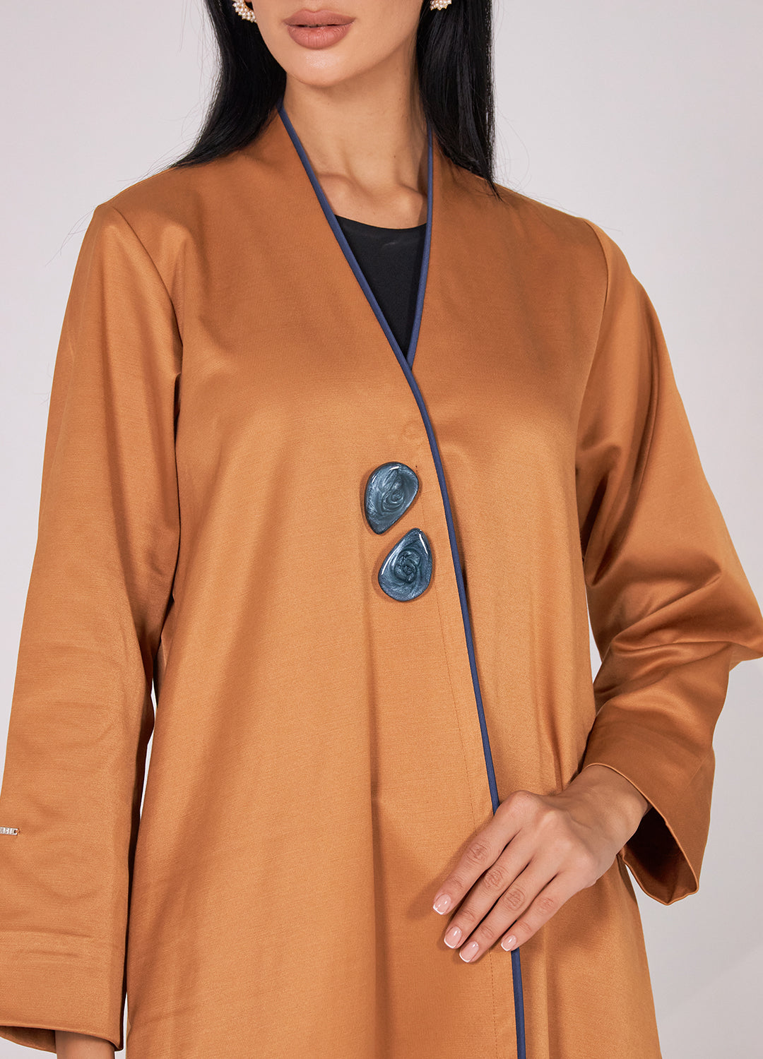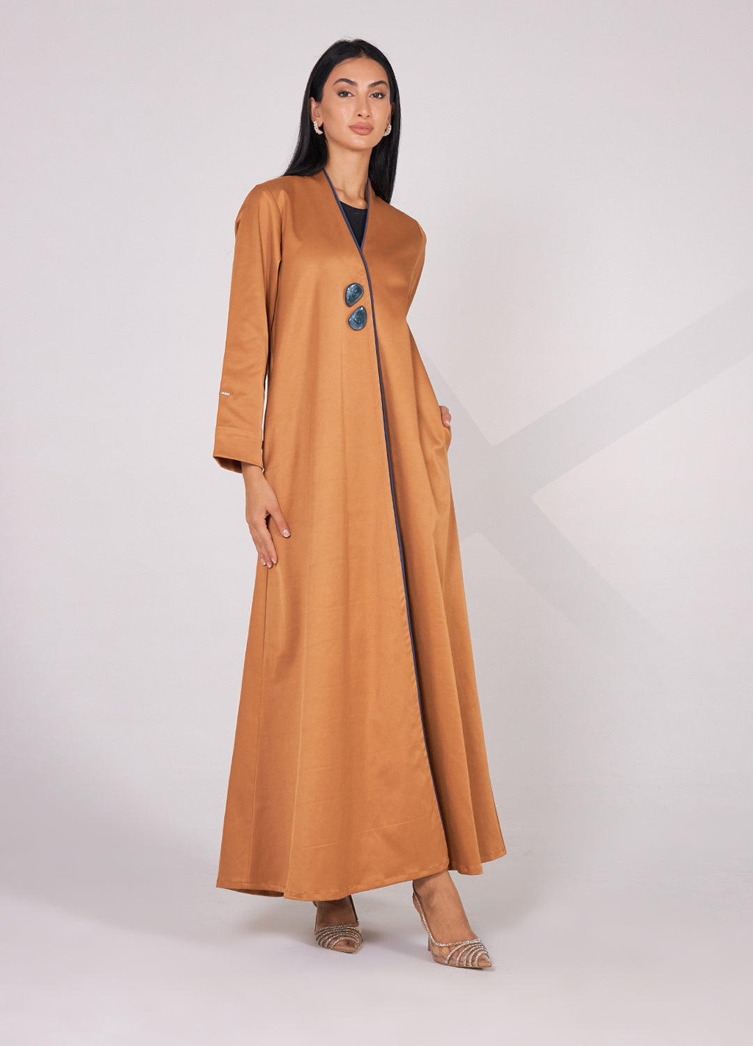 A-line cut abaya, made with Jacquard fabric and adorned with 2 Big beautiful Buttons for an elegant and modern look.
