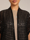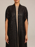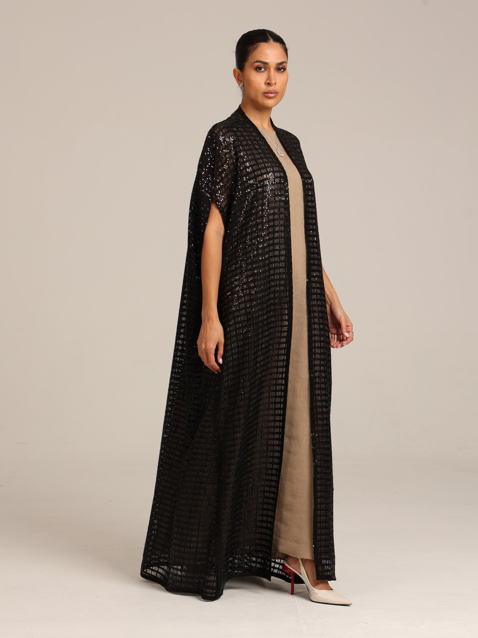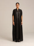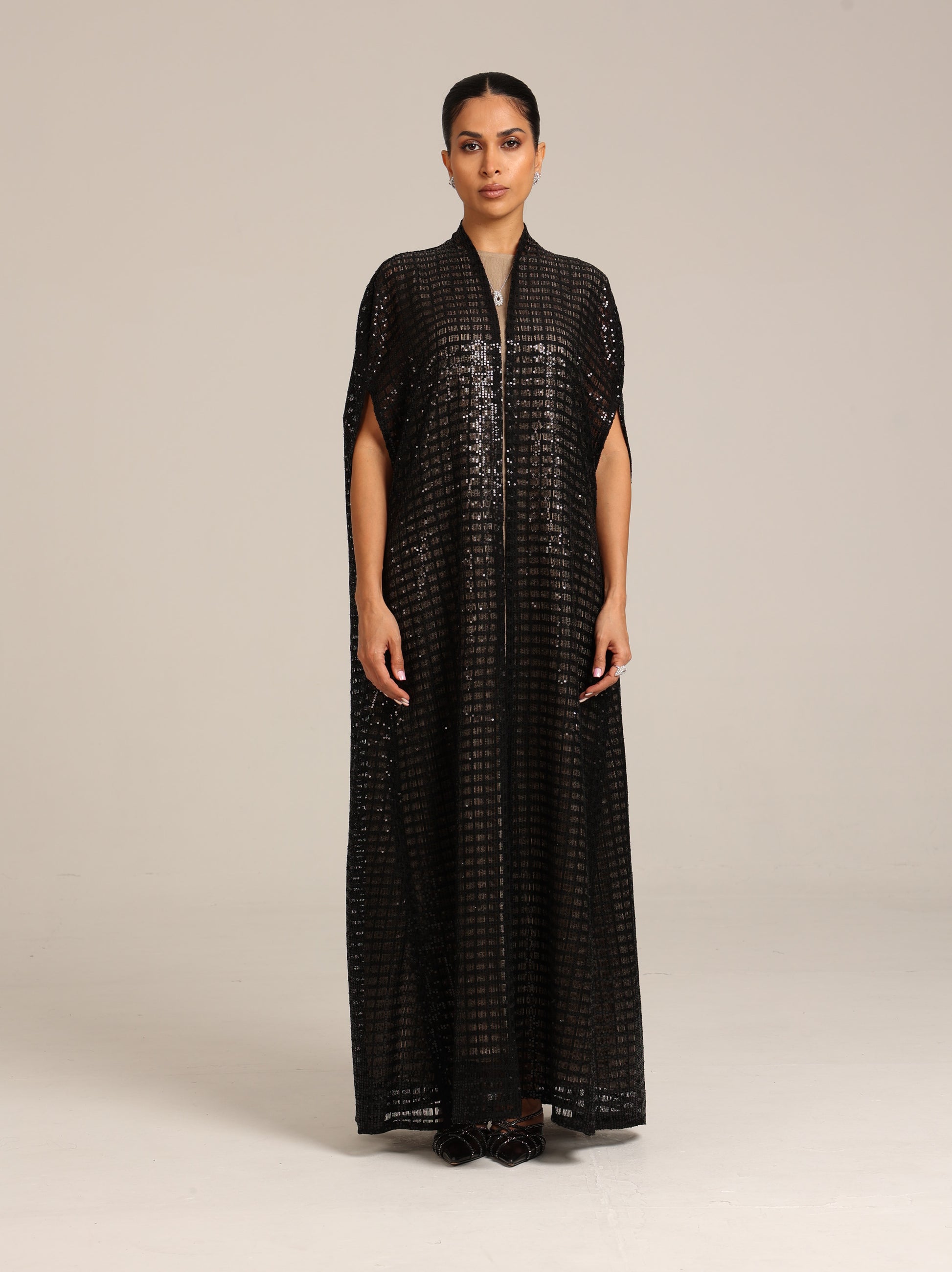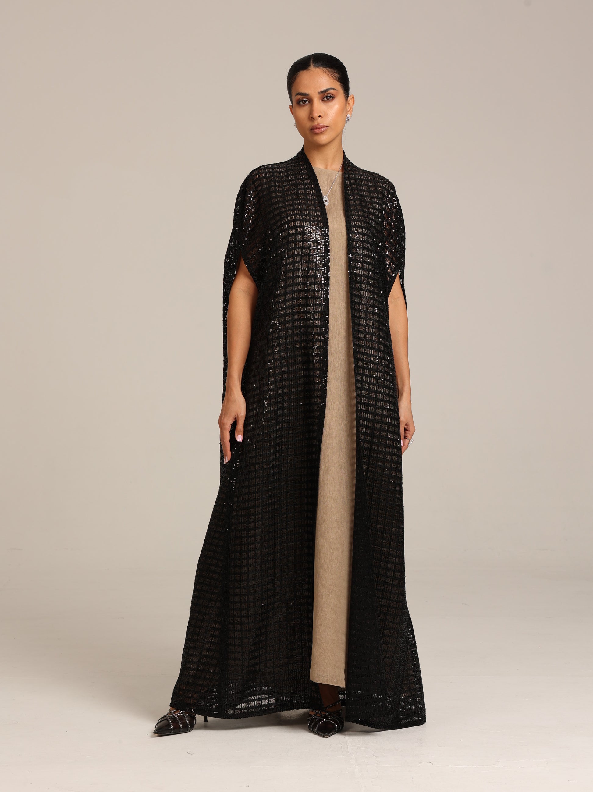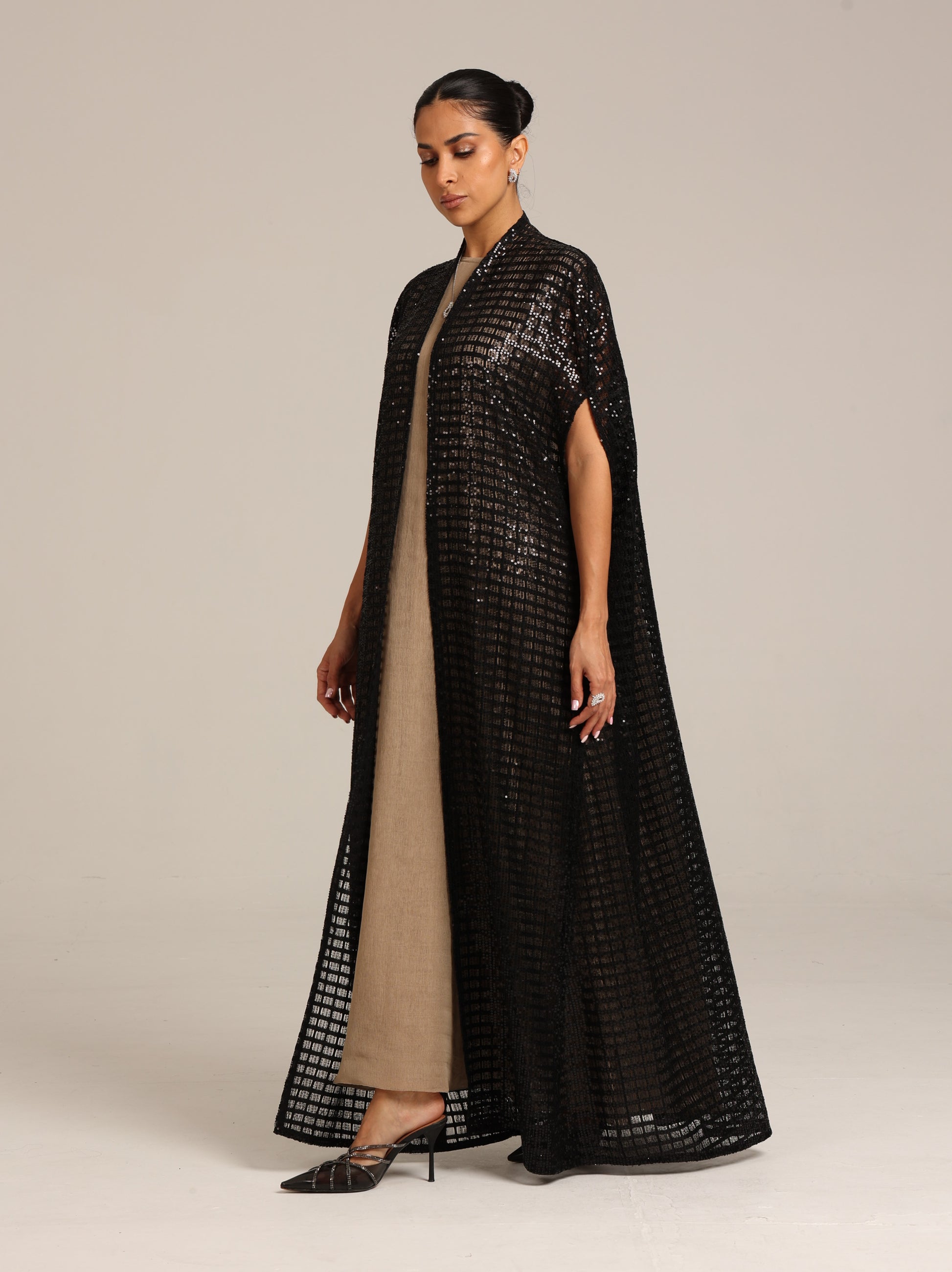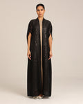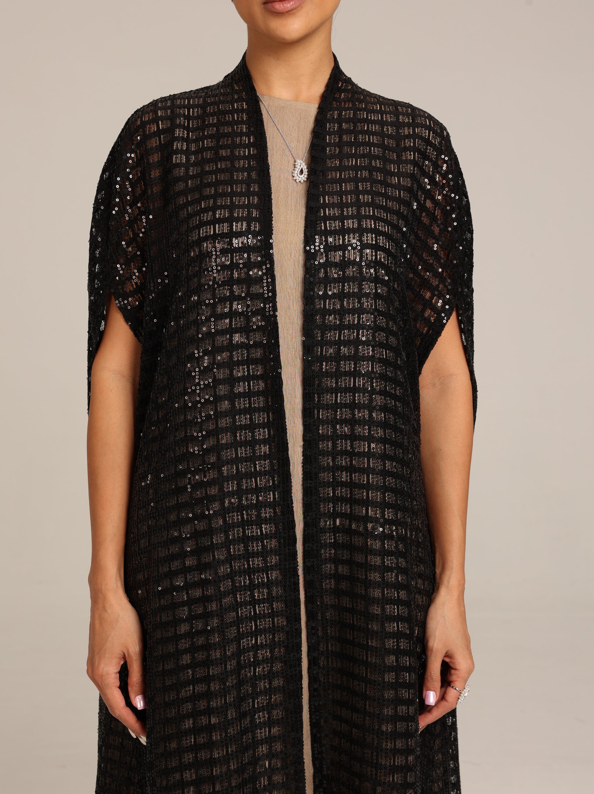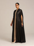 عباية من قماش شبكي أسود مرصع بالترتر على شكل قصة كيب