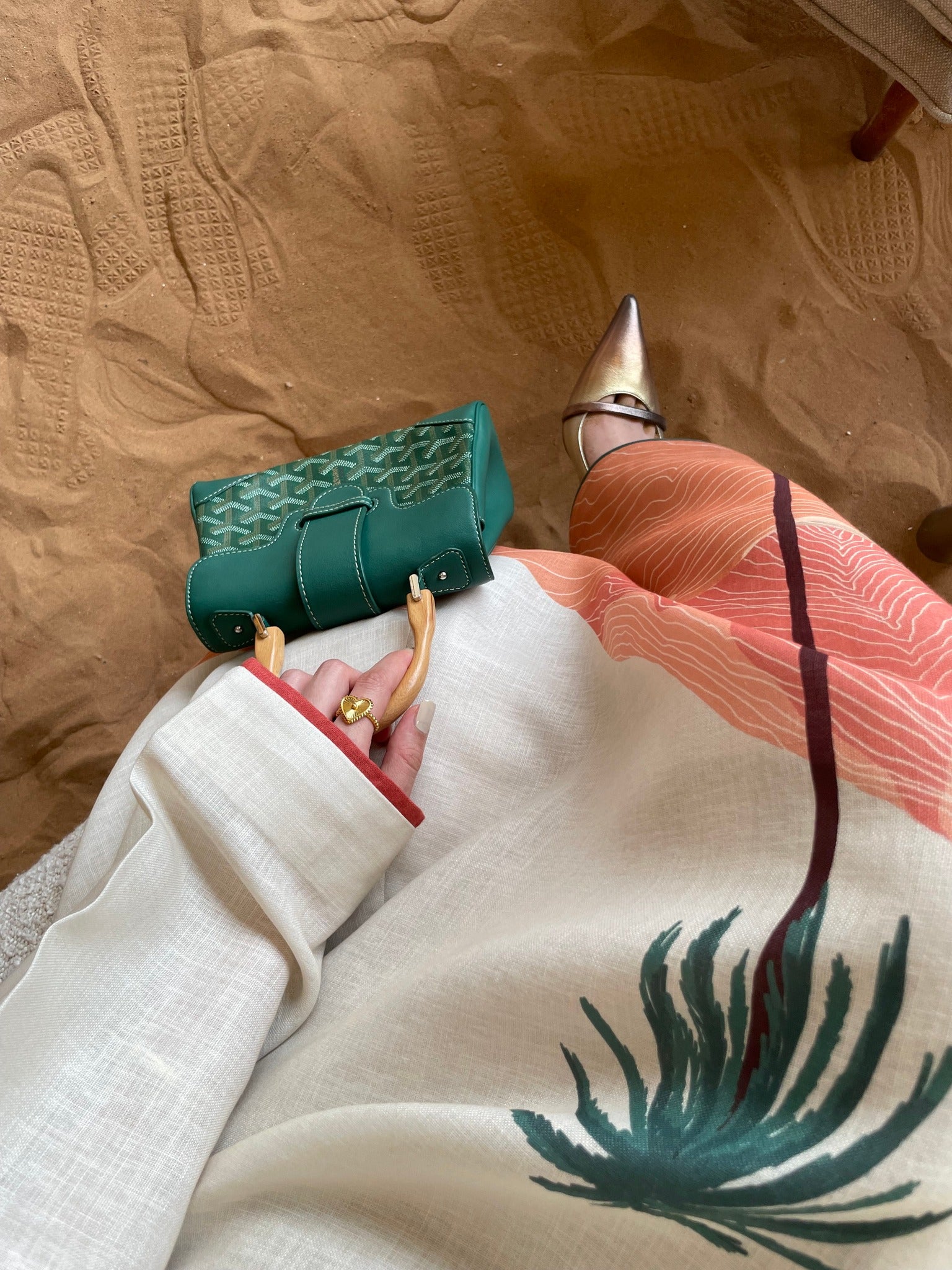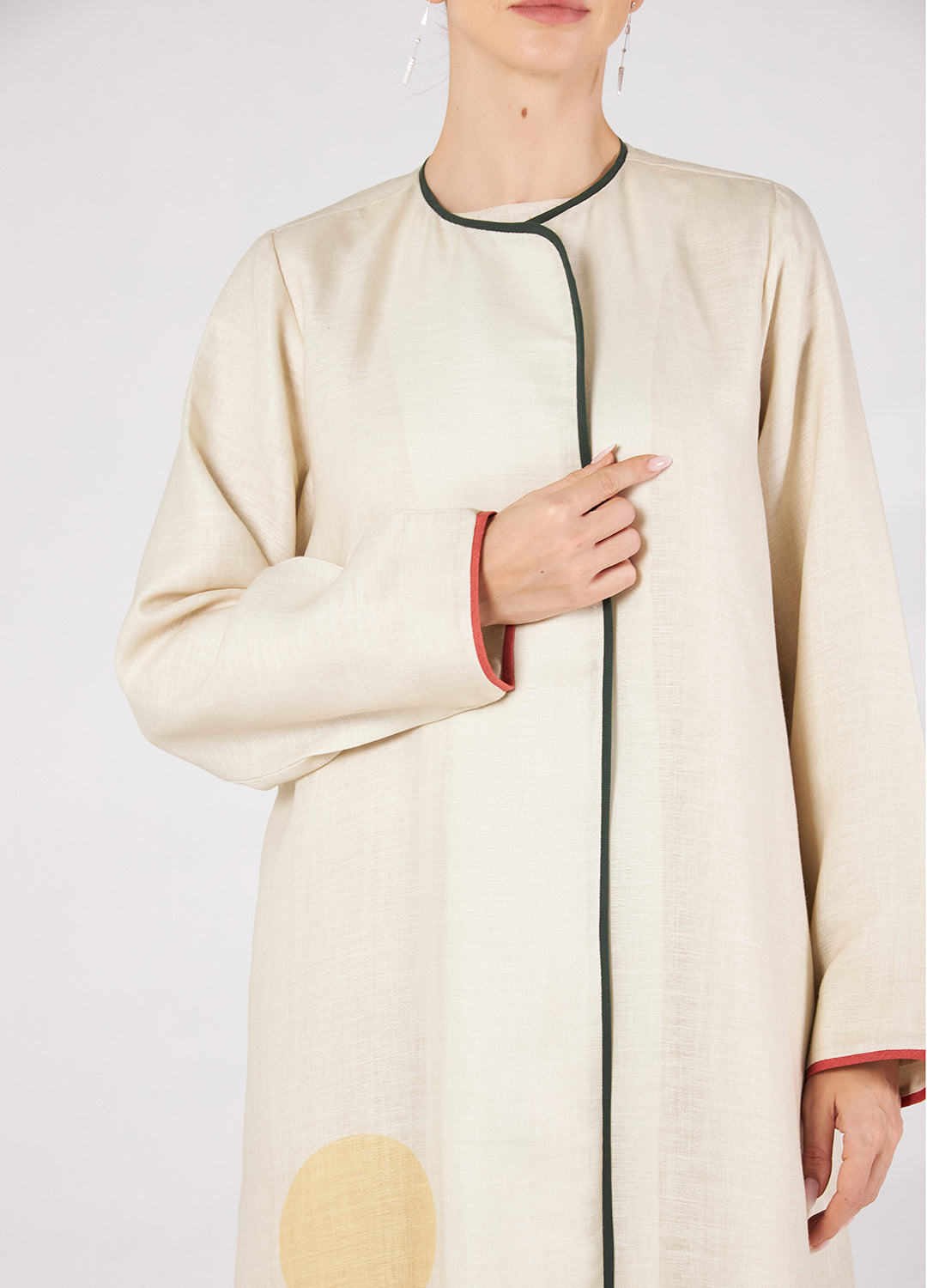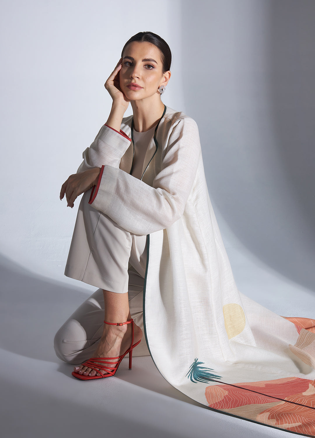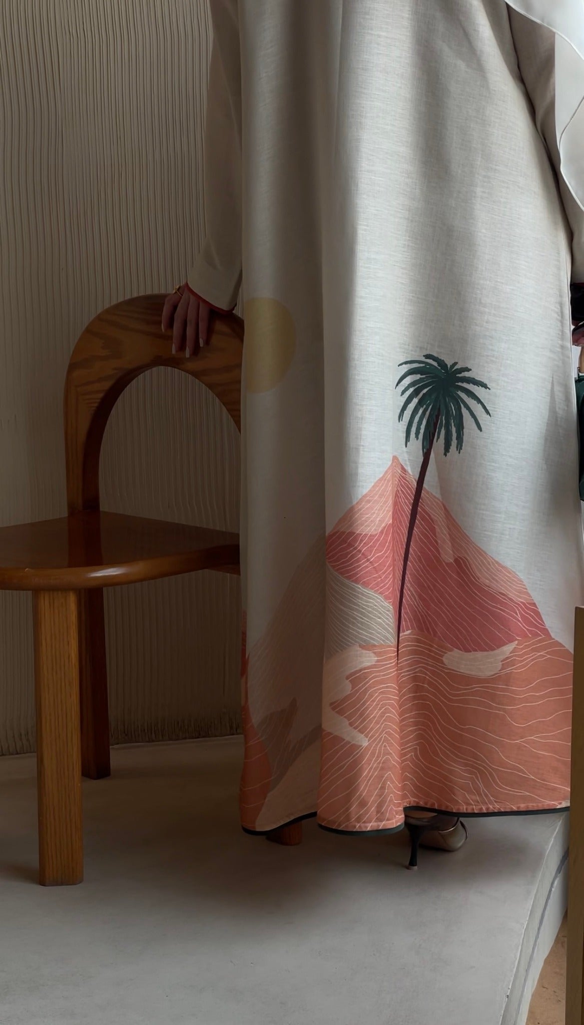عباية من قماش اللينن الشفاف قليلا مرسومة بطباعة يدوية عليها