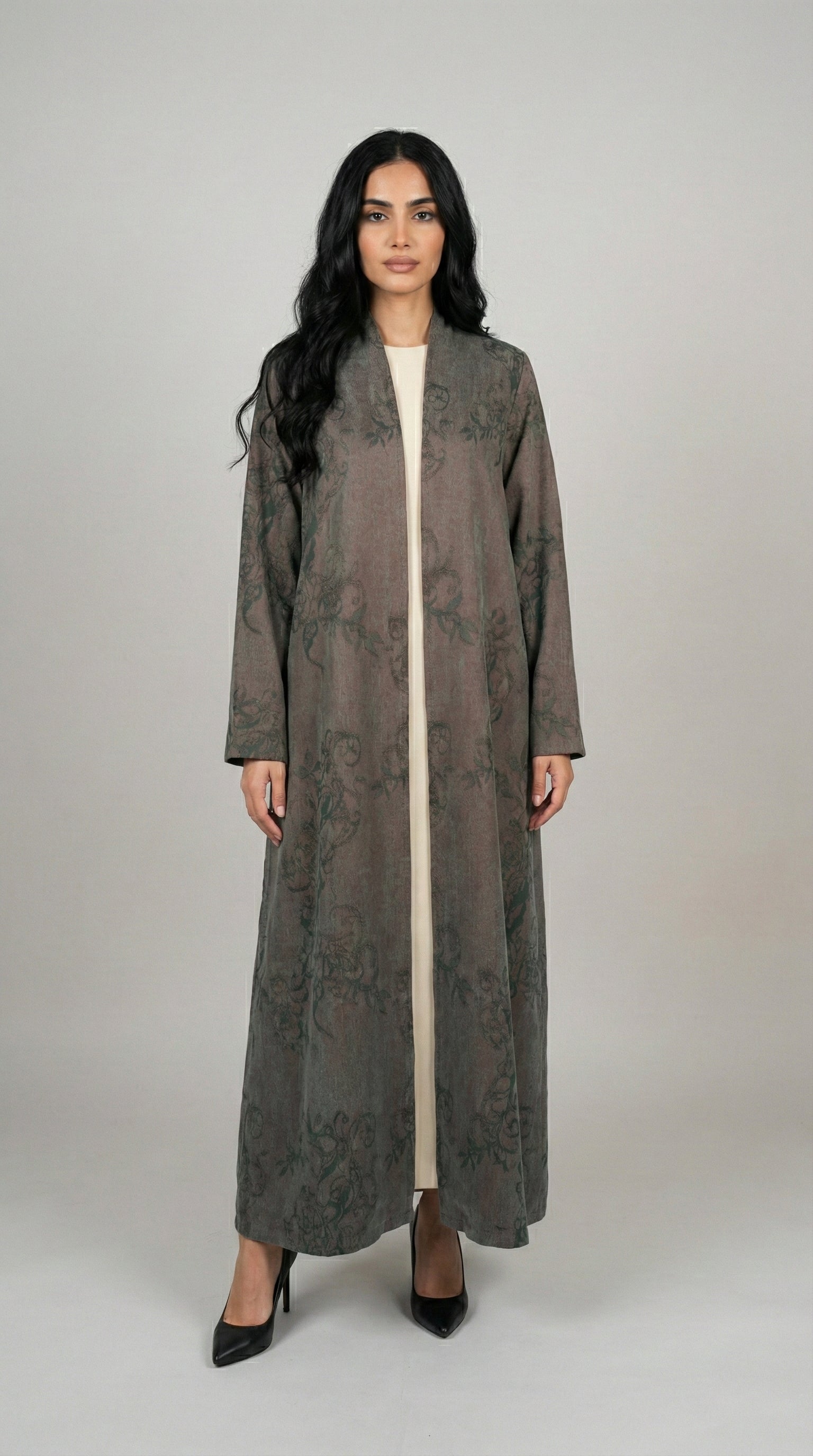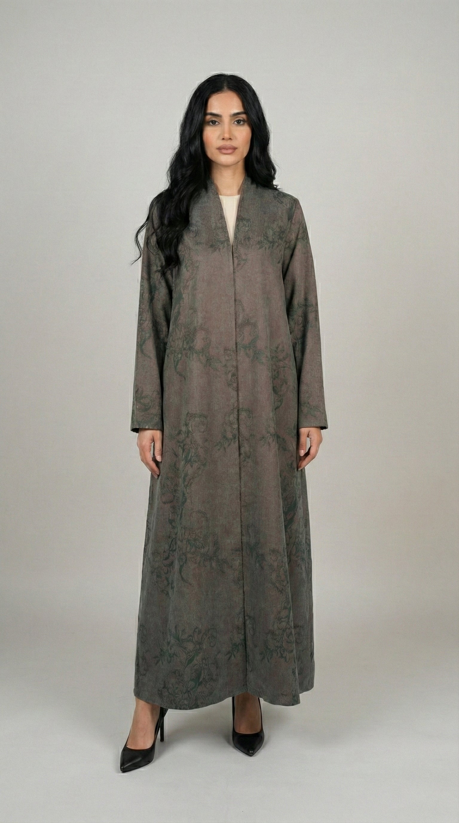 Abaya made of luxurious cupro Jacquard fabric, with Green Shila