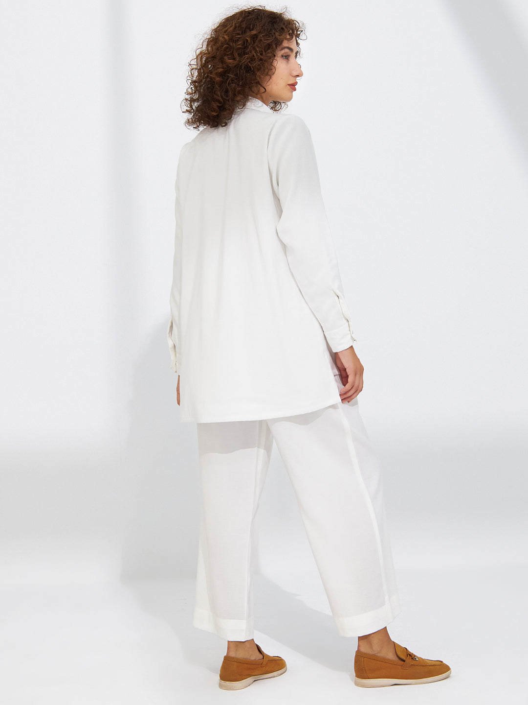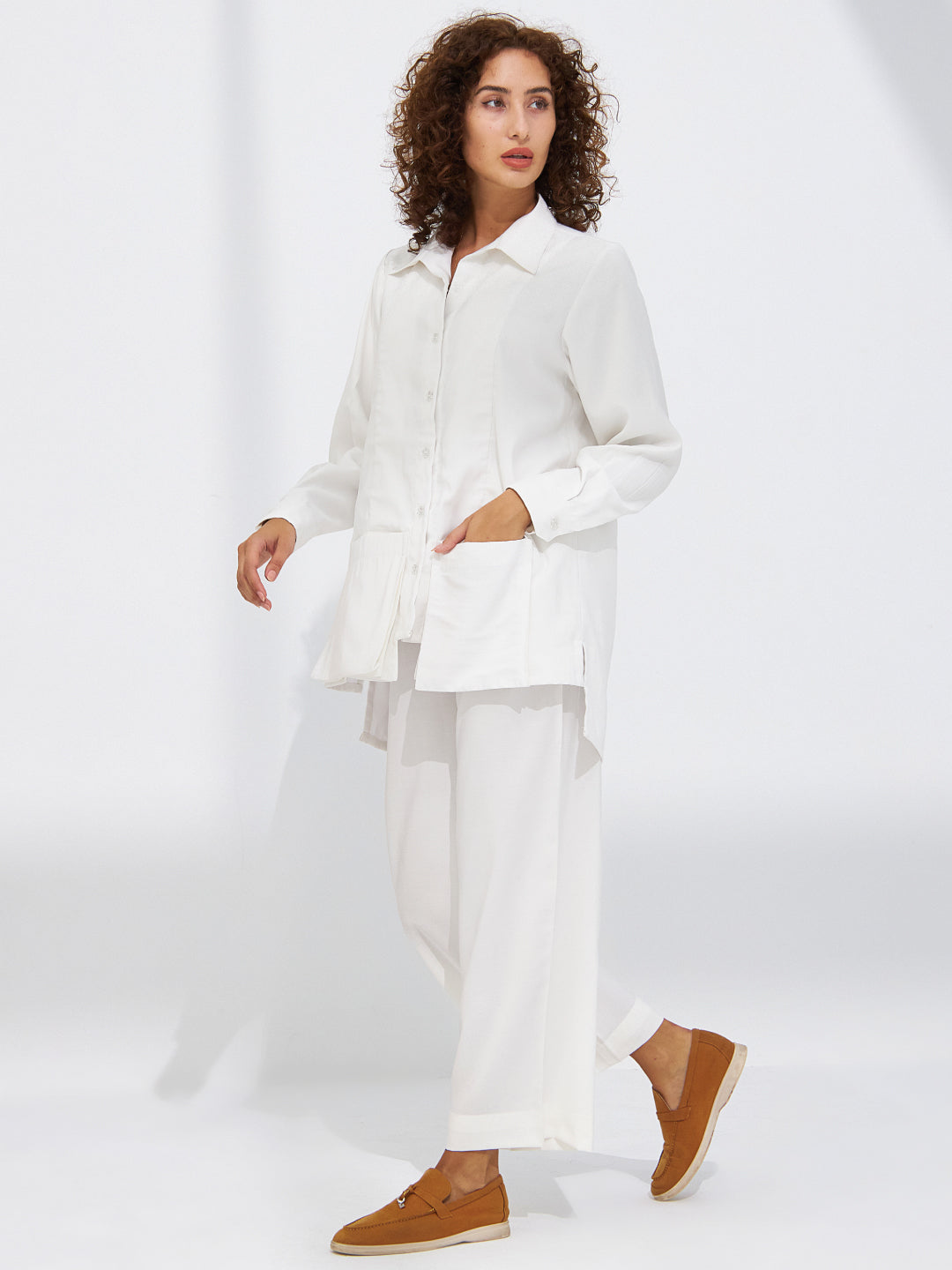 واسعة وفضفاضة مزينة بأزرار بارزه و جيب جانبية كبيرة