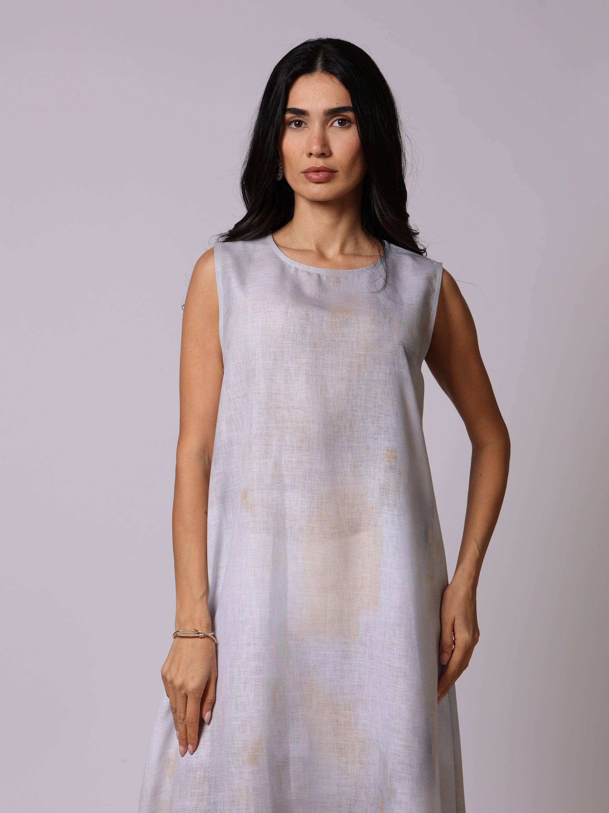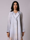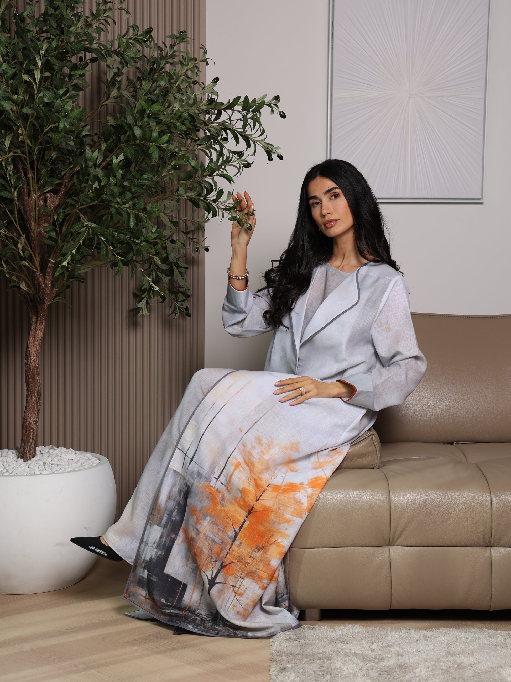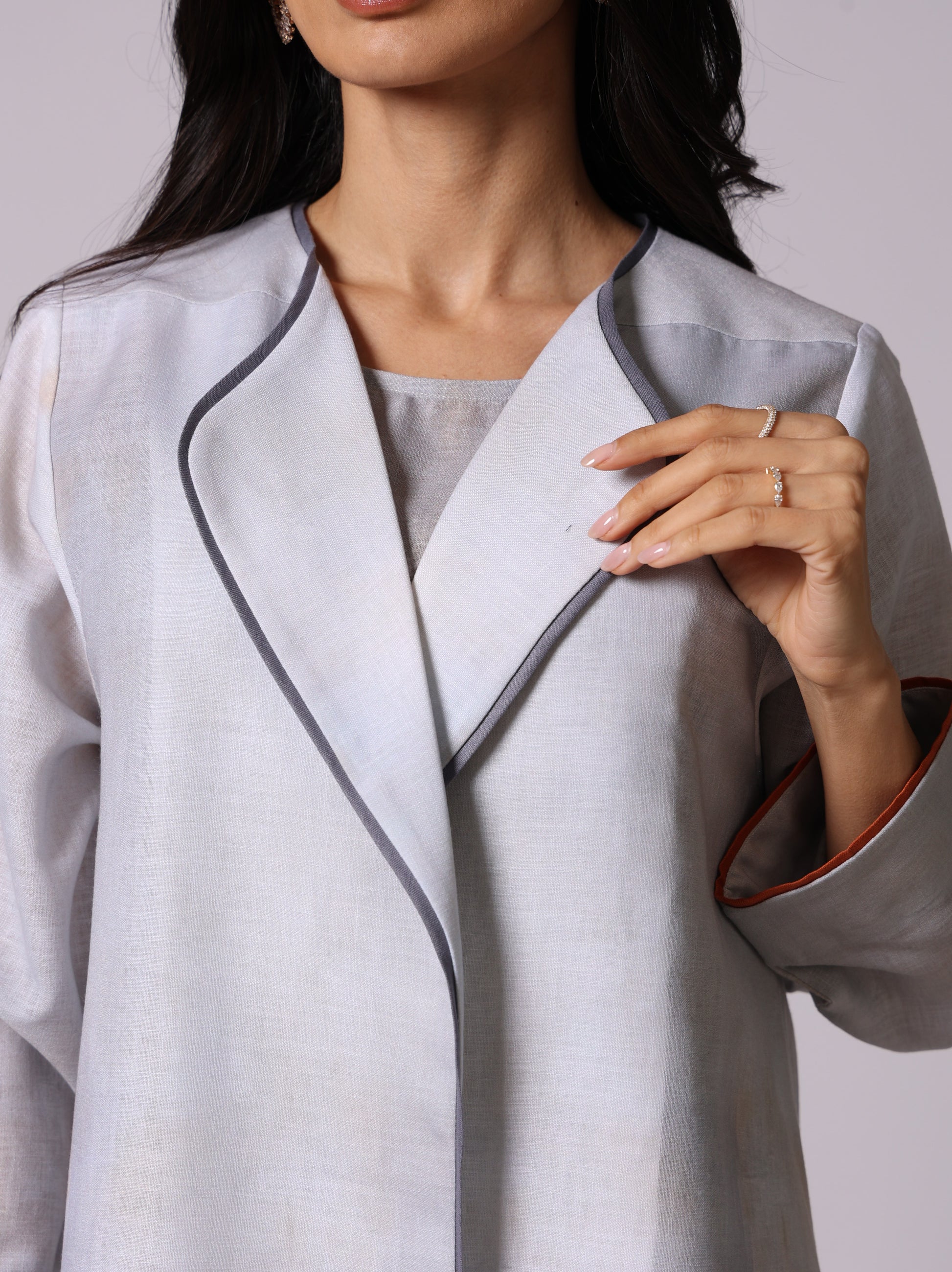 A luxurious A Line cut Abaya Set made of fabric mixed linen and viscose .