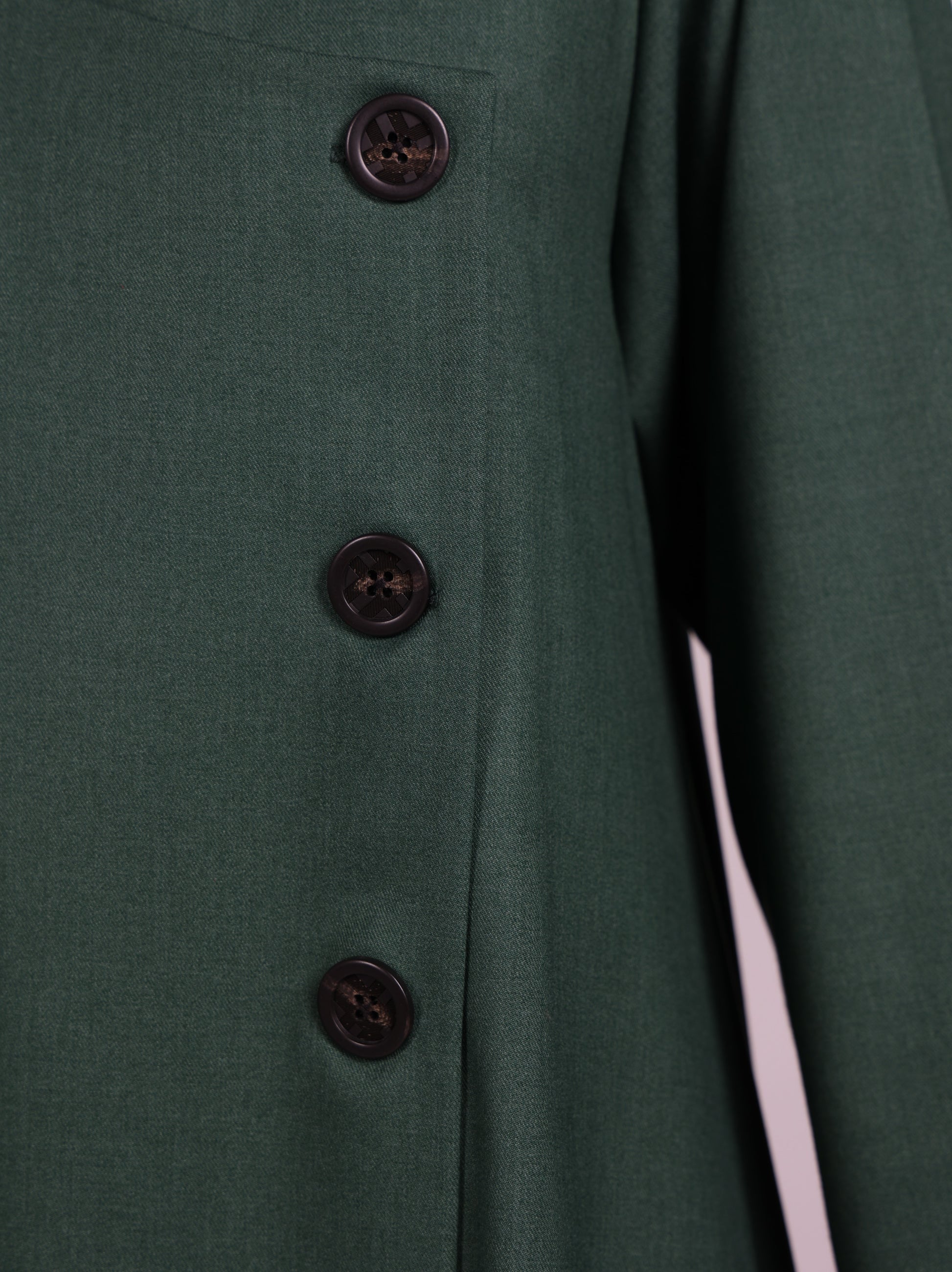It comes in a unique tone that adds a refined seasonal charm, complemented by elegant wooden buttons that bring a touch of natural sophistication.