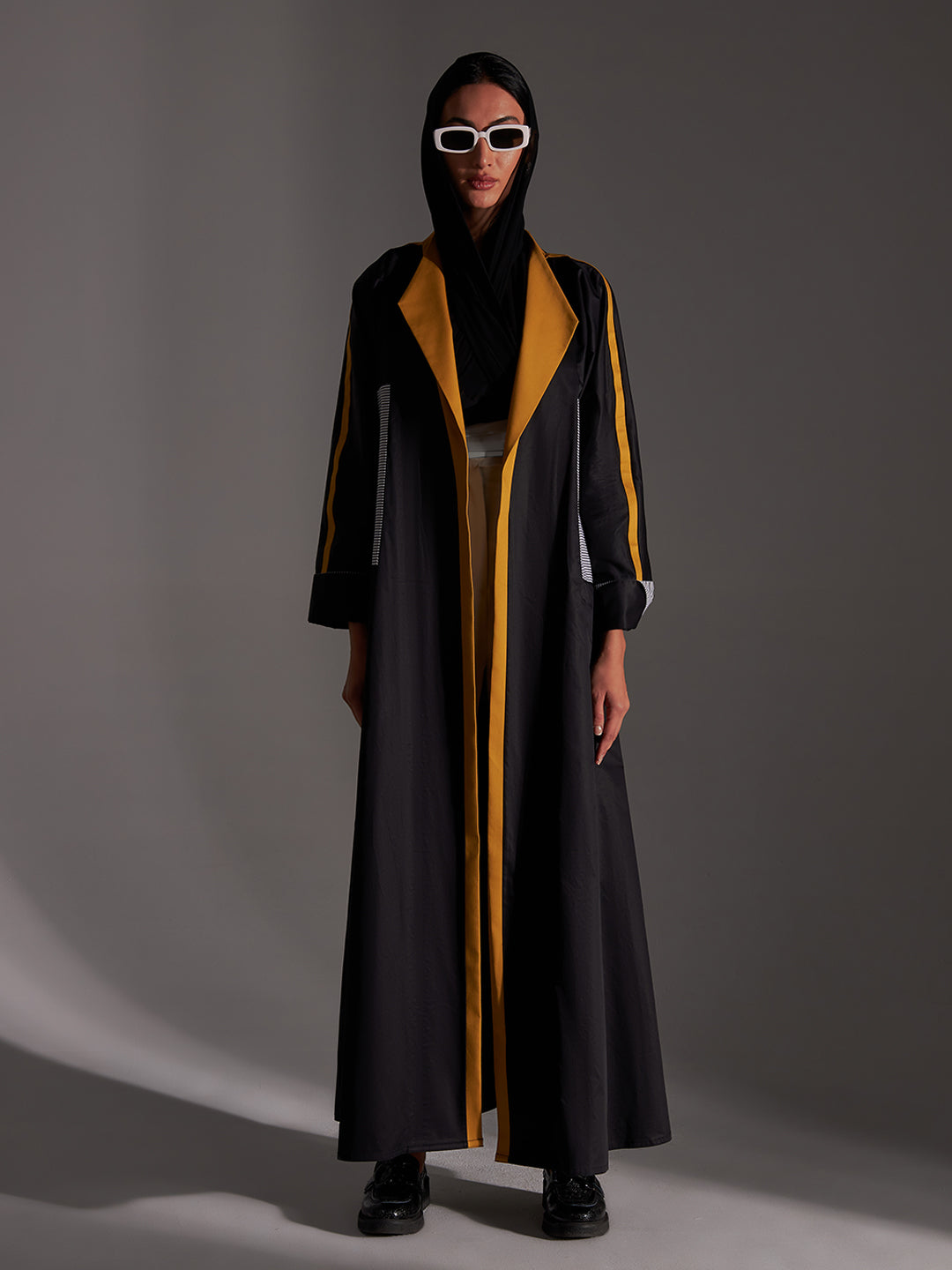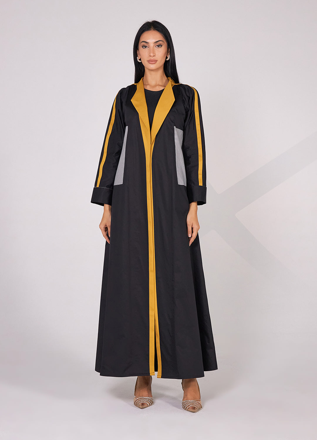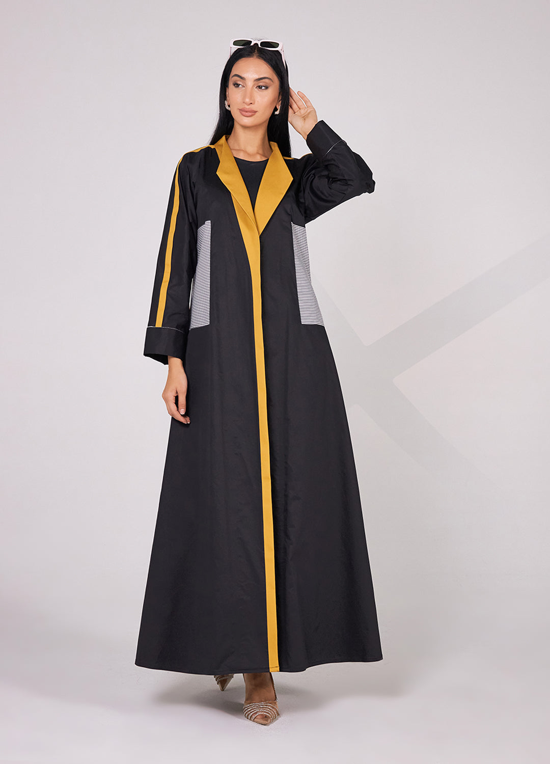 عباية من قماش القطن الساتان الفاخر بقصة ياقة مميزة و دمج لوني رائع , من مجموعة رمضان و العيد 2024