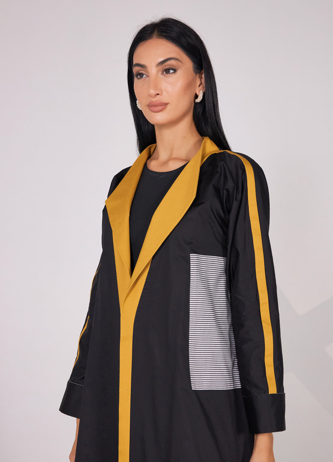 an exquisite abaya crafted from luxurious Cotton Satin with a jacket-style cut. from the Ramadan and Eid 2024 collection.