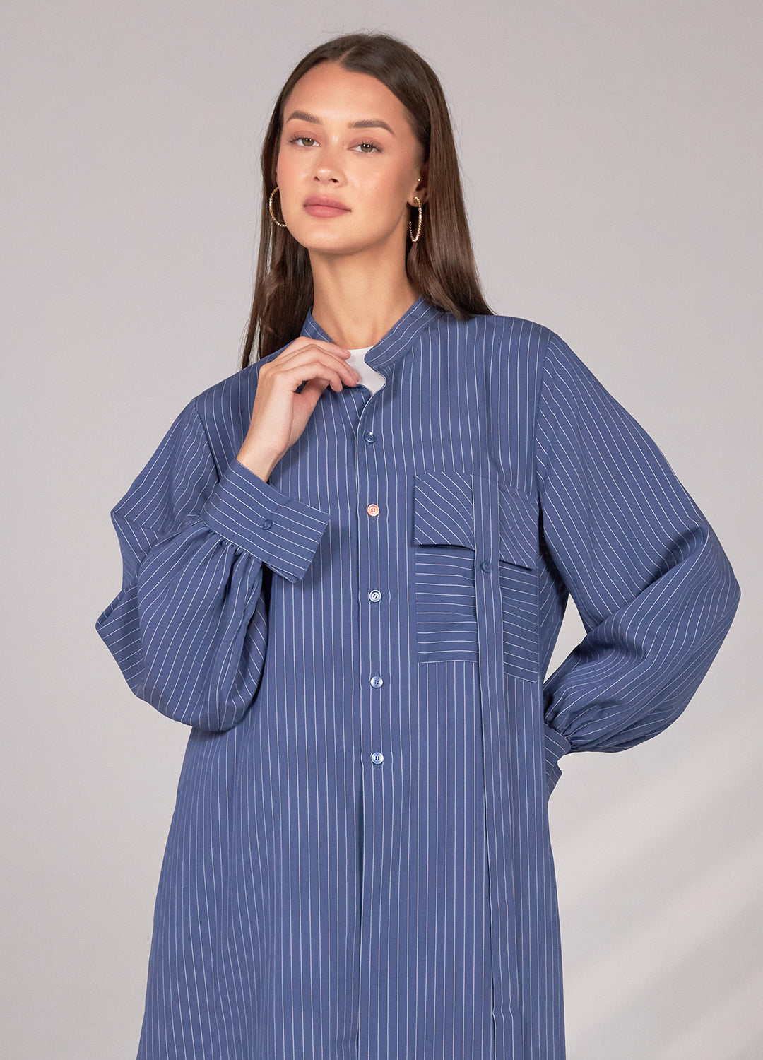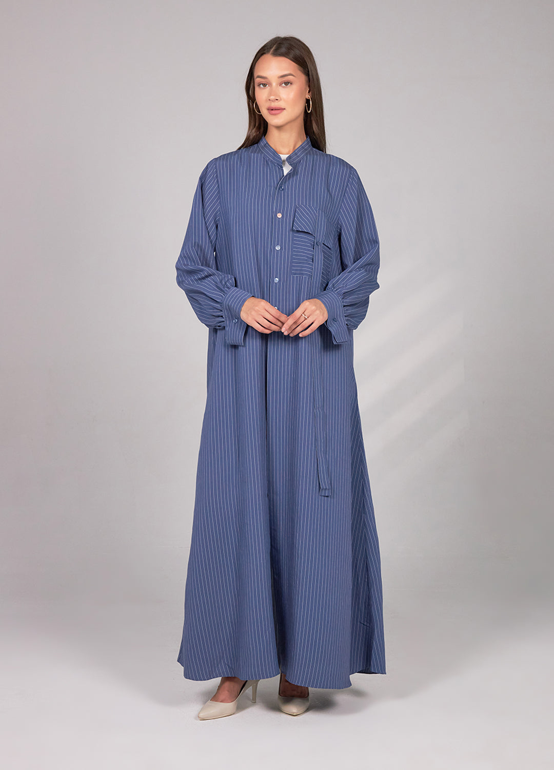 This shirt-style abaya from the "Sylva (Land of Wood)" collection is crafted from high-quality, sustainable fabric, making it distinctly elegant for summer. Whether styled open or closed, it undoubtedly adds a modern and chic touch to your ensemble while maintaining modesty. Every detail in