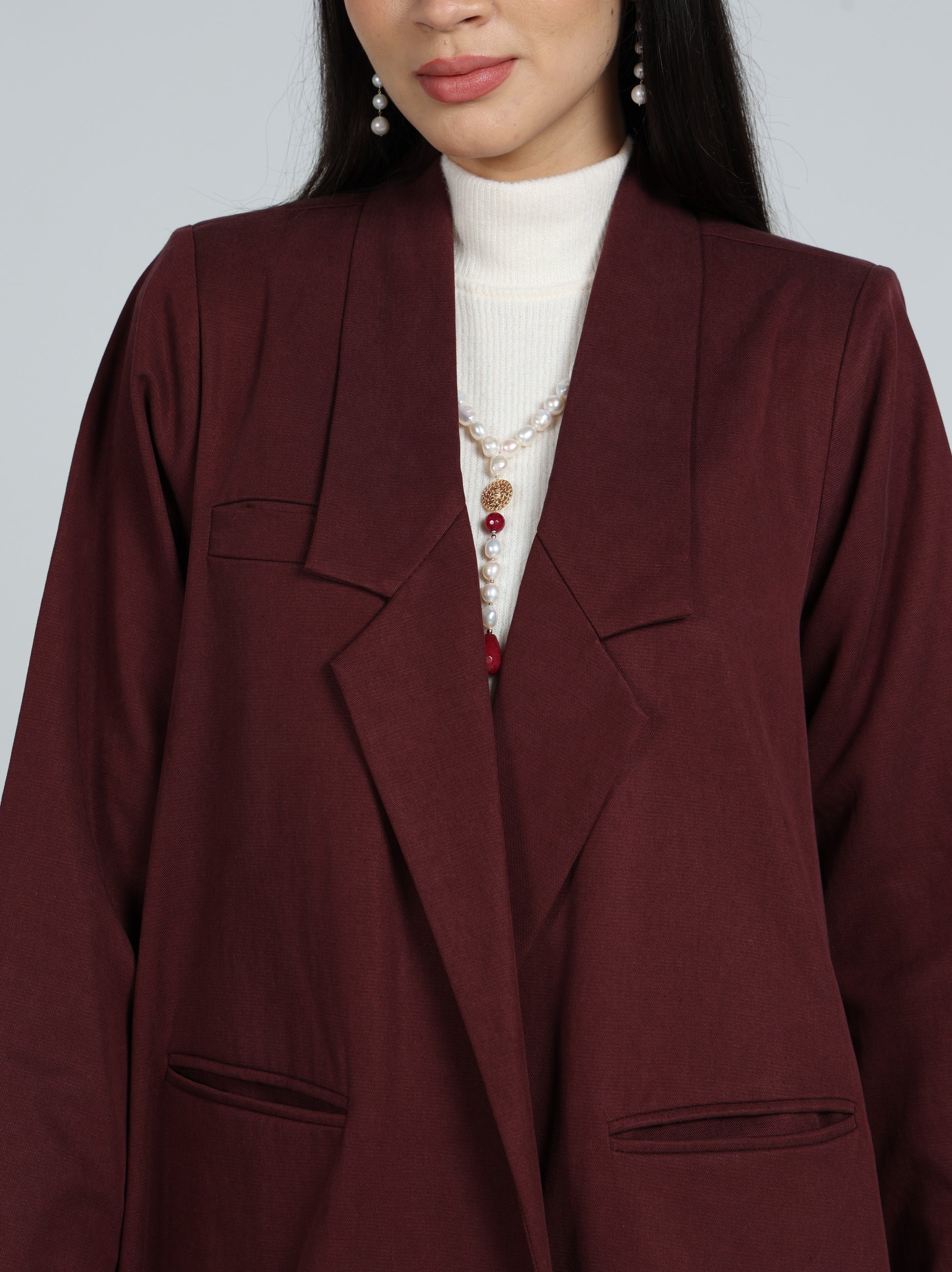 العباية من قماش التويل الفاخر مصممة بأناقة، بقصة البليزر الأنيقة اختاريها مفتوحة أو مغلقة ، معها شيلة من نفس اللون