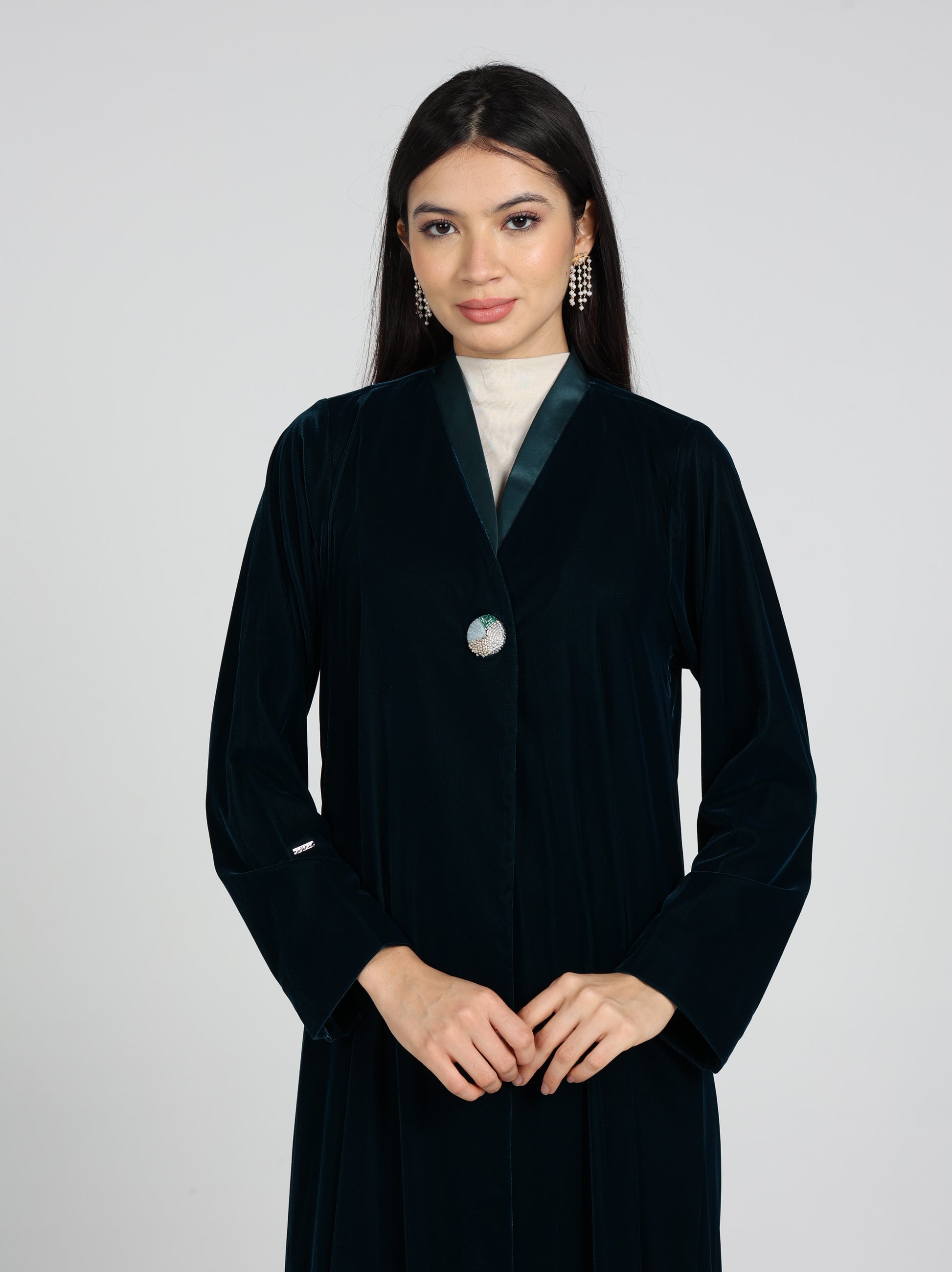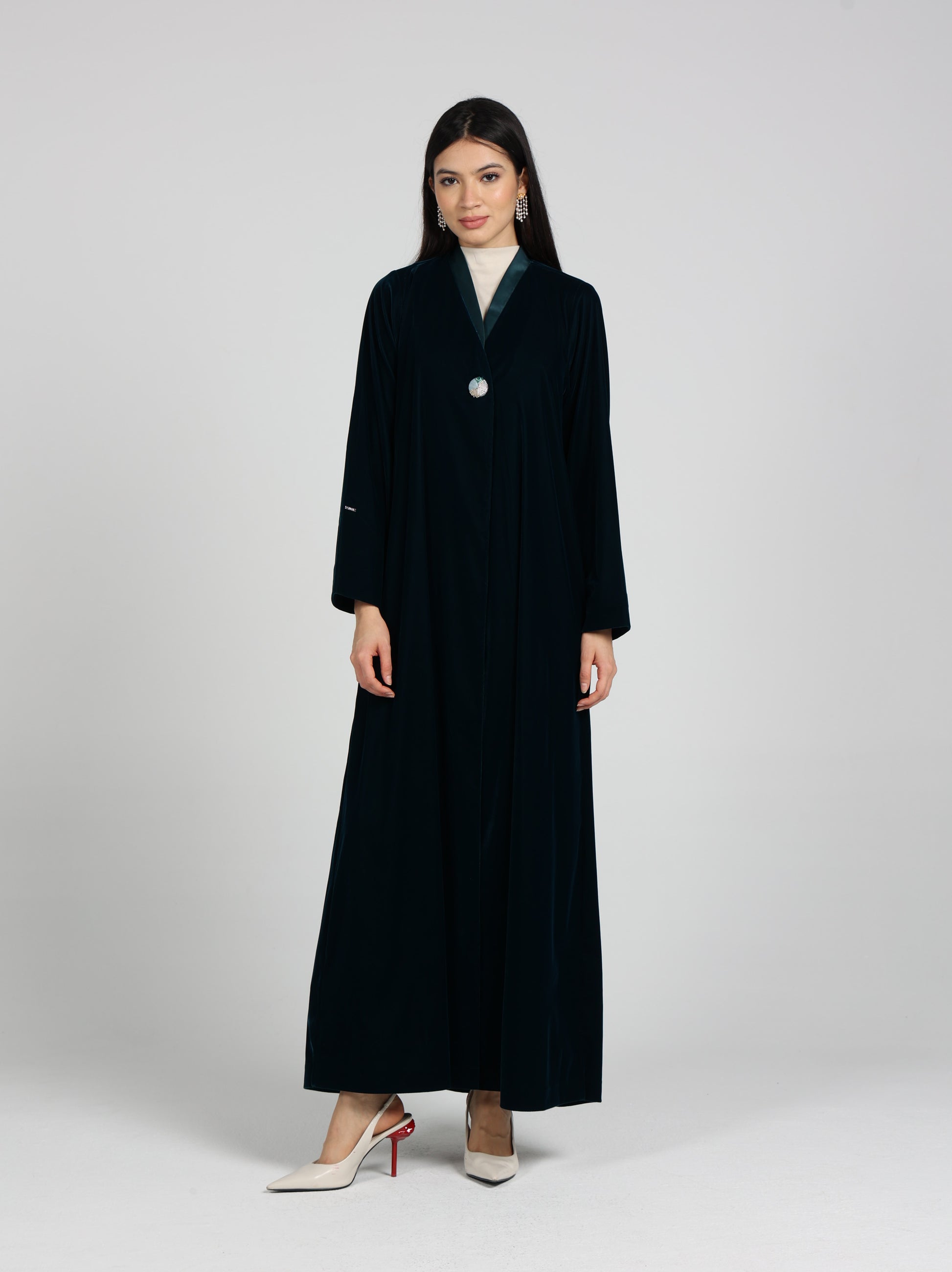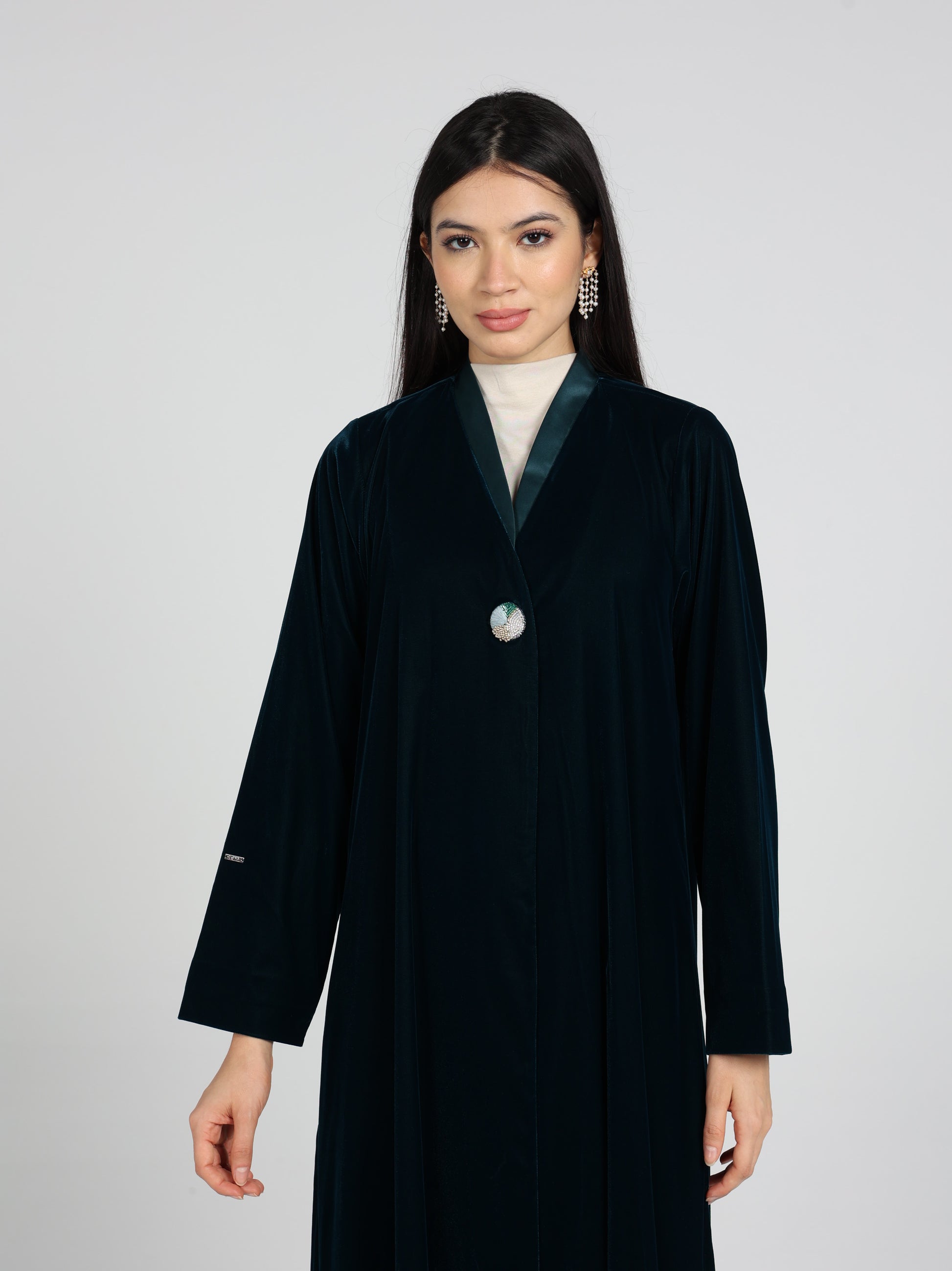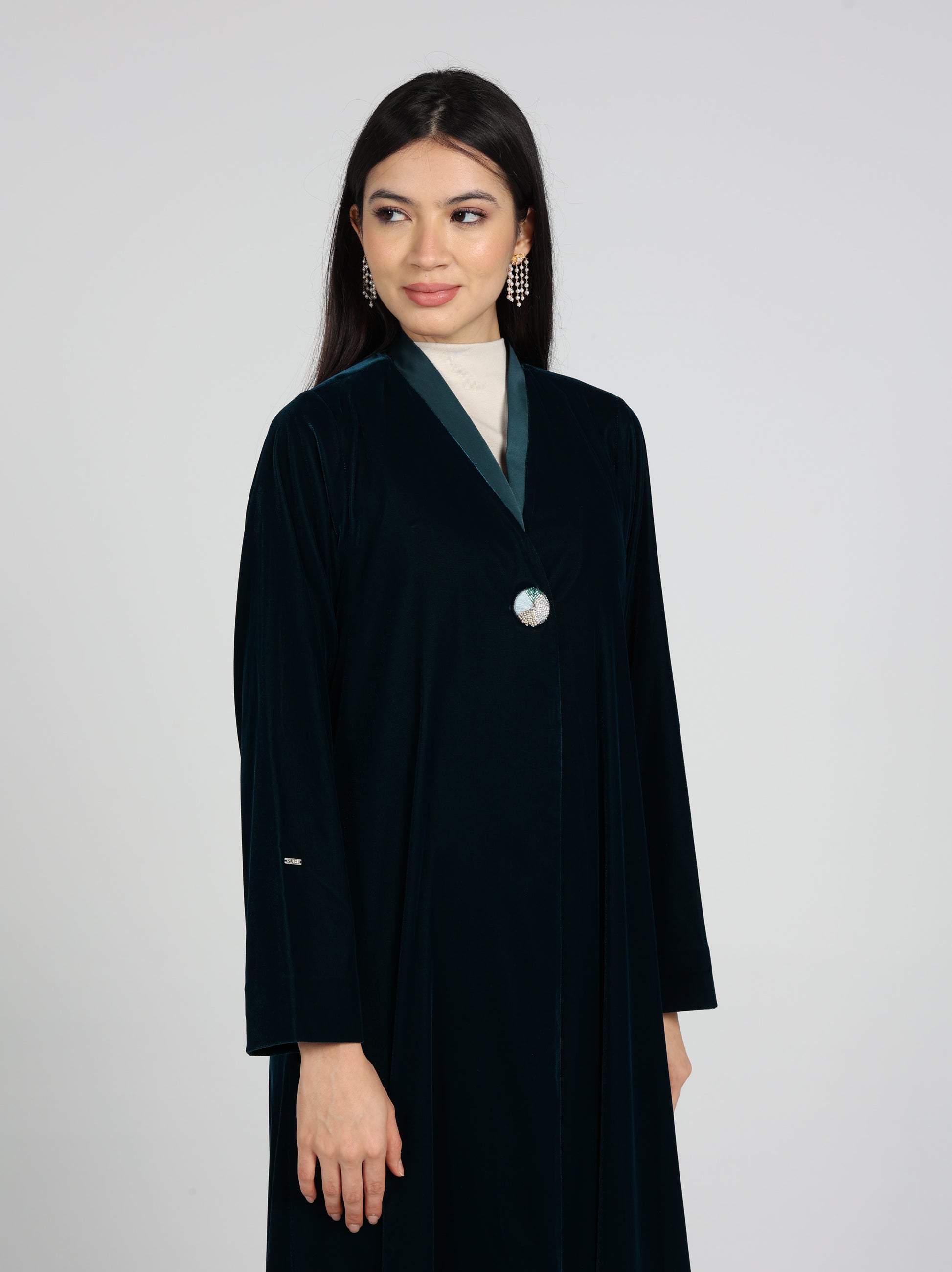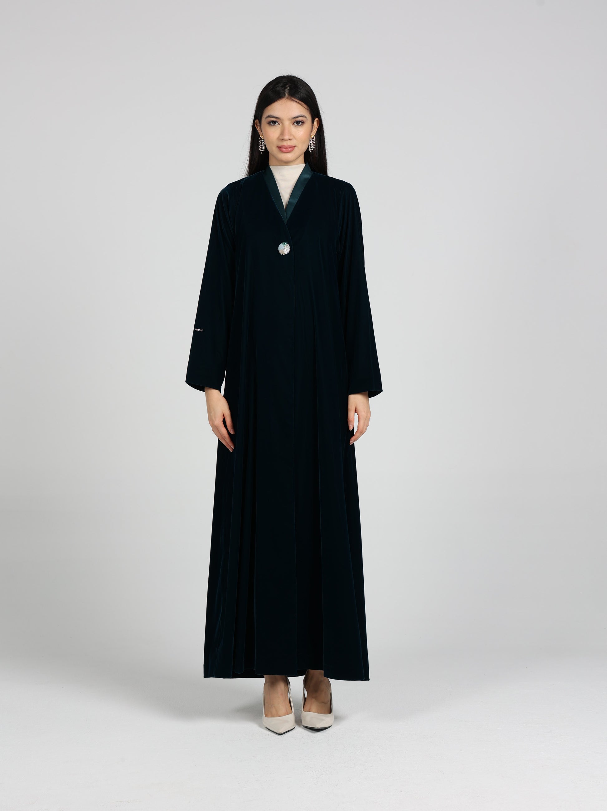 An elegant abaya made from luxurious Velvet fabric .