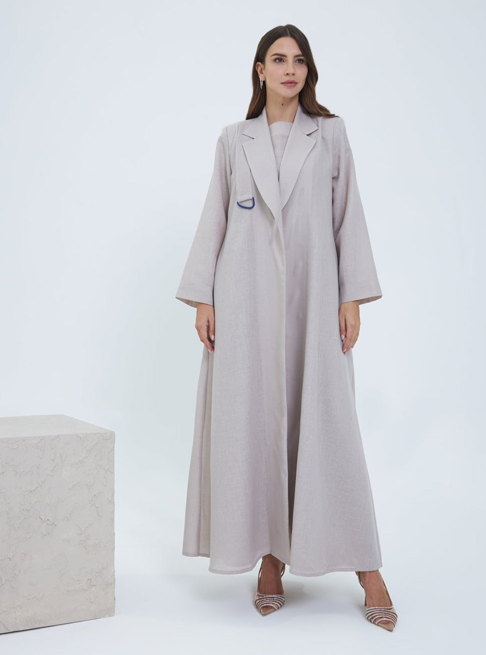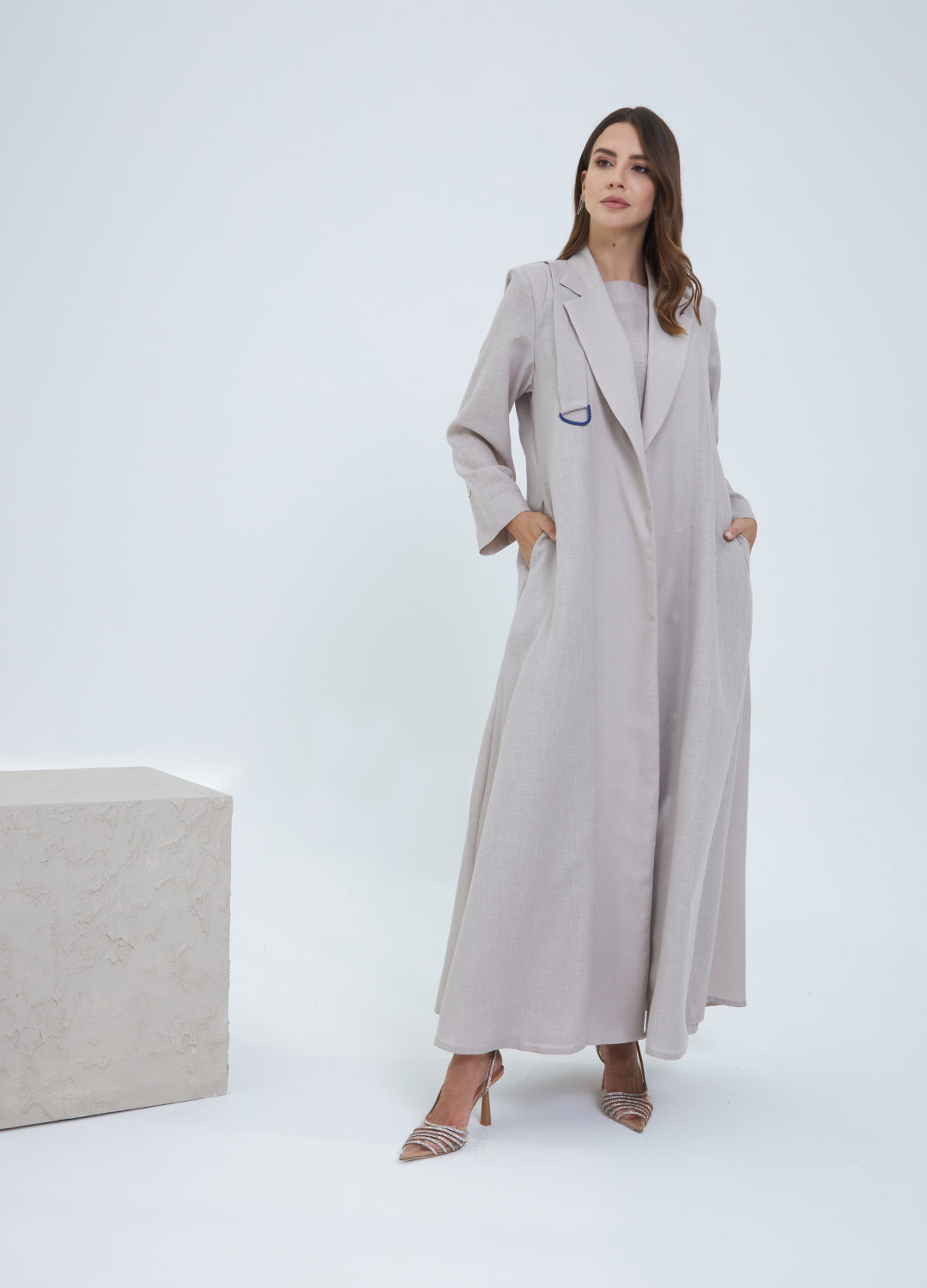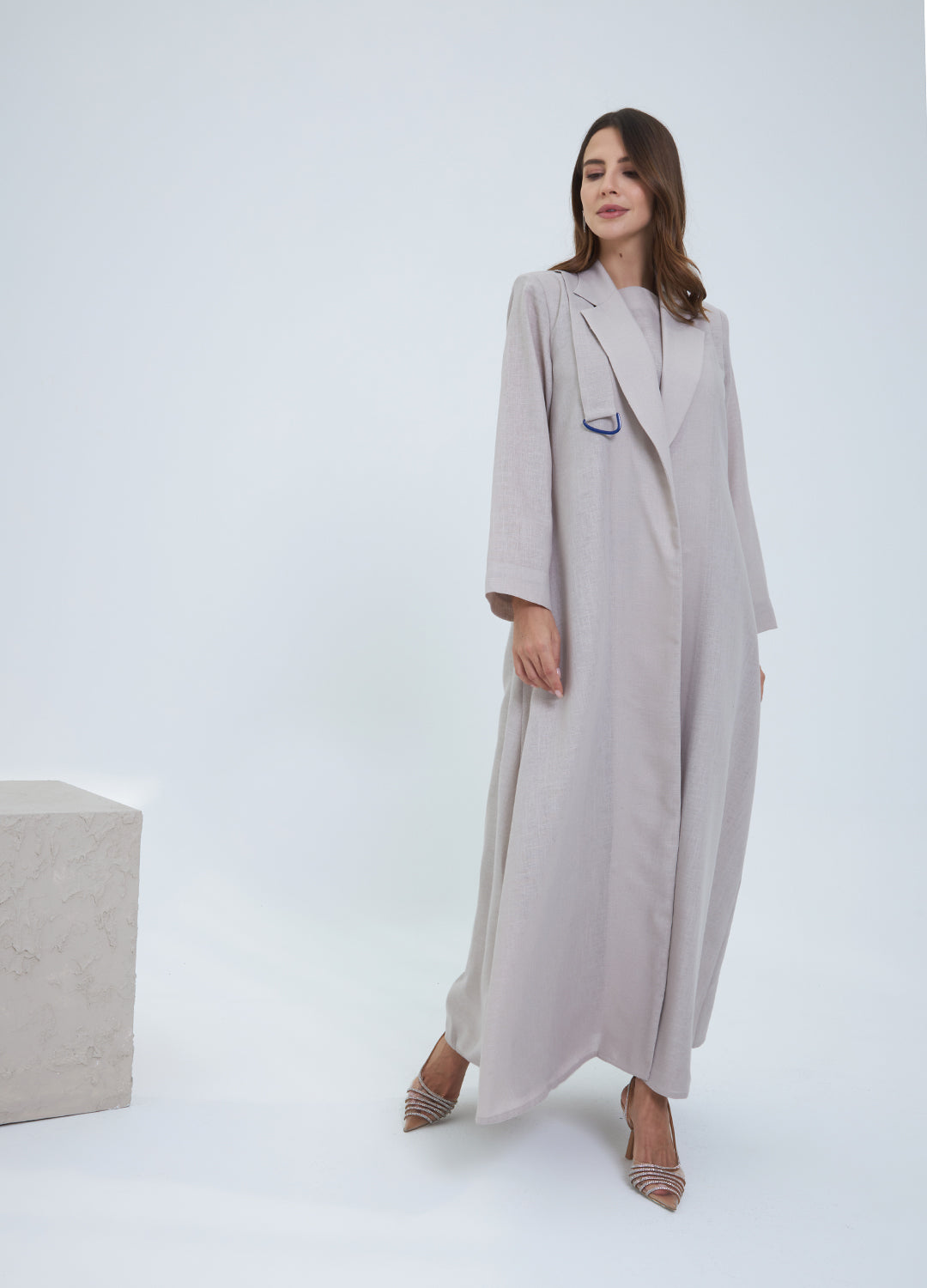 عباية قطعتين من اللينن الناعم ، رائع الملمس و الإحساس بلمسة اكسسوار خاصة و جيب جانبي